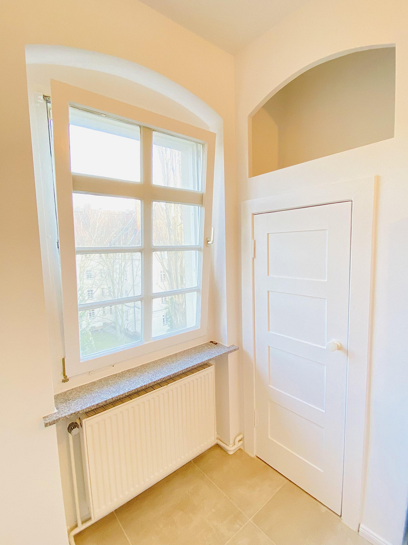 The apartment is located in one of Berlin's most desirable residential areas, in the Friedenau district, known for its historic buildings, quiet streets, and well-maintained front gardens.