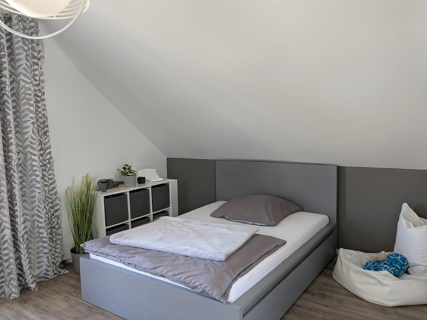 Hofgartenstraße 57, 74196 Neuenstadt (Neuenstadt am Kocher) – Baden-WürttembergThis attractively designed 4-room maisonette apartment, with a sunny south-facing orientation, is located in a well-maintained apartment building with six units. The bright living areas, modern layout, and barrier-free access via the elevator make it a comfortable home. The spacious living and dining area is the heart of the apartment. Floor-to-ceiling windows provide plenty of natural light and create a welcoming atmosphere. The open ceiling design enhances the airy feeling and gives the living area a special architectural charm. From here, you can access the approximately 13 m² balcony, which offers a wide view; an electric awning provides pleasant shade. The modern built-in kitchen is harmoniously integrated into the living area and offers ideal conditions for everyday life as well as for convivial evenings. The bathroom on the lower level is generously sized and features a bathtub, shower, and a heated towel rail. On this level, you'll also find two of the three bedrooms, as well as a practical storage room and a separate laundry room – a convenient advantage compared to the communal laundry room in the basement. An internal staircase leads to the upper mezzanine level. Here, you'll find an open gallery, another spacious room, and a second bathroom with a shower and toilet. The apartment also includes a generous underground parking space with its own electrical outlet – without a neighboring parking space – as well as an additional outdoor parking space. The underground parking space is located directly next to the entrance to the staircase, making it particularly convenient. A well-maintained courtyard with a children's playground completes the offering and provides additional value for families.