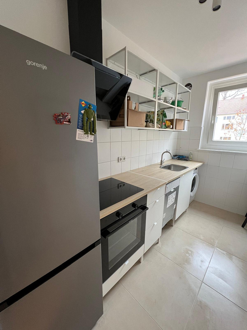 We have a room available now in our pleasant 4-person shared apartment, and we are looking for a new roommate. All rooms are bright and airy, feature high-quality flooring, and have been freshly painted white. All rooms are fully furnished – see sample pictures. The apartment includes a large, fully equipped kitchen, a bathroom with a shower, and super-fast internet, as well as a washing machine. The kitchen and washing machine are available for use by all residents of the shared apartment. Furnishing of the individual room can be arranged on request and for an additional fee.