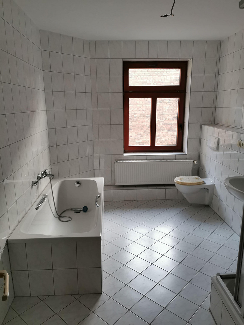 06110 Halle (Saale) (Südliche Innenstadt) – Sachsen-AnhaltThis 2-room apartment is located in the southern part of the city center of Halle (Saale). The apartment has a living area of 63.58 m² and is situated on the fourth floor of a multi-family building that was renovated in 1998. It is in good condition and features a living room, a spacious kitchen, a bedroom, and a modern, bright bathroom with a bathtub and shower. Additionally, there is storage space in the basement and a bicycle storage area in the courtyard.