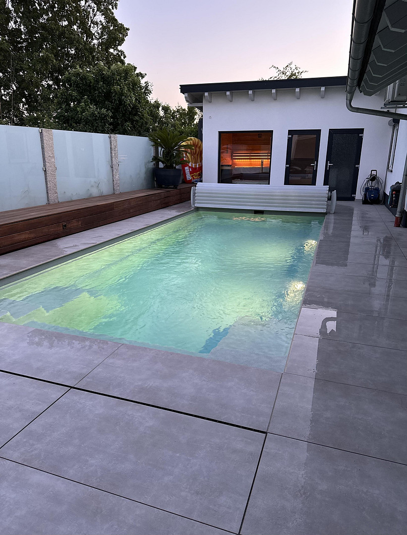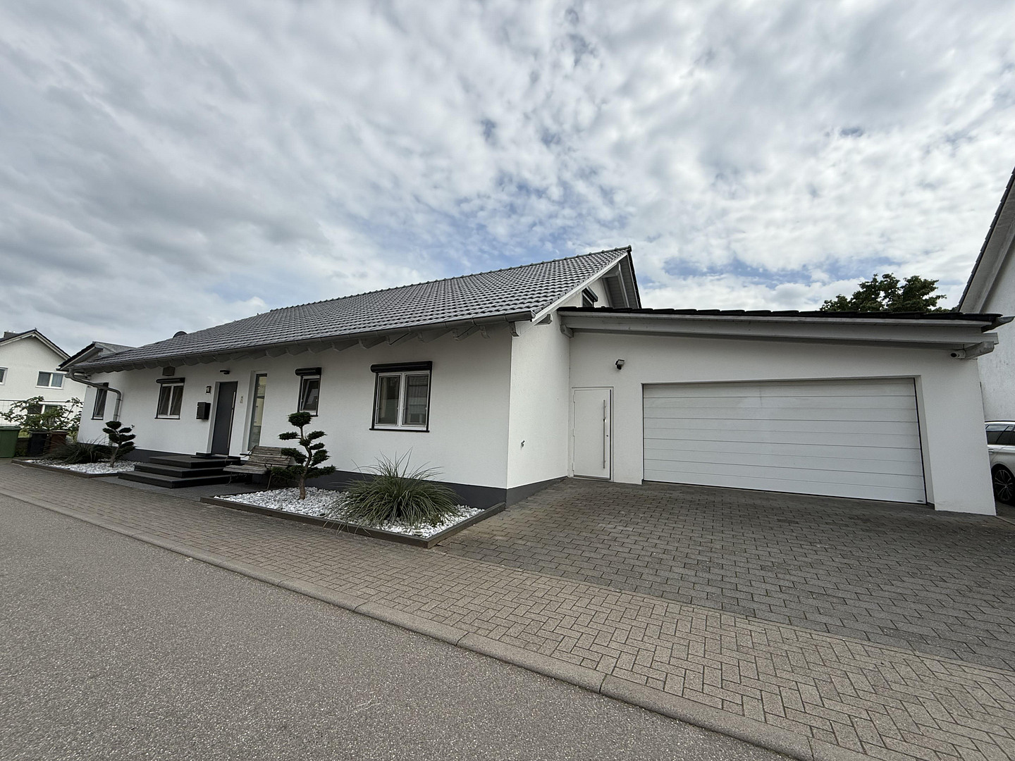67363 Lustadt (Oberlustadt) – Rheinland-PfalzTel: 0176 244 67 241. PLEASE NO REAL ESTATE AGENT INQUIRIES!!! This high-quality detached house impresses with its modern design, spacious layout, and exclusive features, located in a desirable area. Upon entering the house, you will be greeted by an inviting and spacious entrance area with a view of a stylish gallery and an elegant granite staircase. The open-plan living and dining area, with floor-to-ceiling windows, provides plenty of natural light and direct access to the veranda. The property features a high-quality fitted kitchen with Miele appliances, a cooking island, and an elegant granite countertop. On the ground floor, there is also a modern daylight bathroom with a concrete finish and a walk-in shower. The converted attic space offers two additional rooms, is air-conditioned, and features high-quality custom-built cabinets, as well as an additional, stylishly renovated daylight bathroom. A particular highlight is the outdoor area: the veranda, made of tropical hardwood, leads to a high-quality ceramic pool with a roller cover and a saltwater system. This area is complemented by an outdoor shower, an outdoor toilet, and an adjacent sauna with a view of the pool. Additional features: