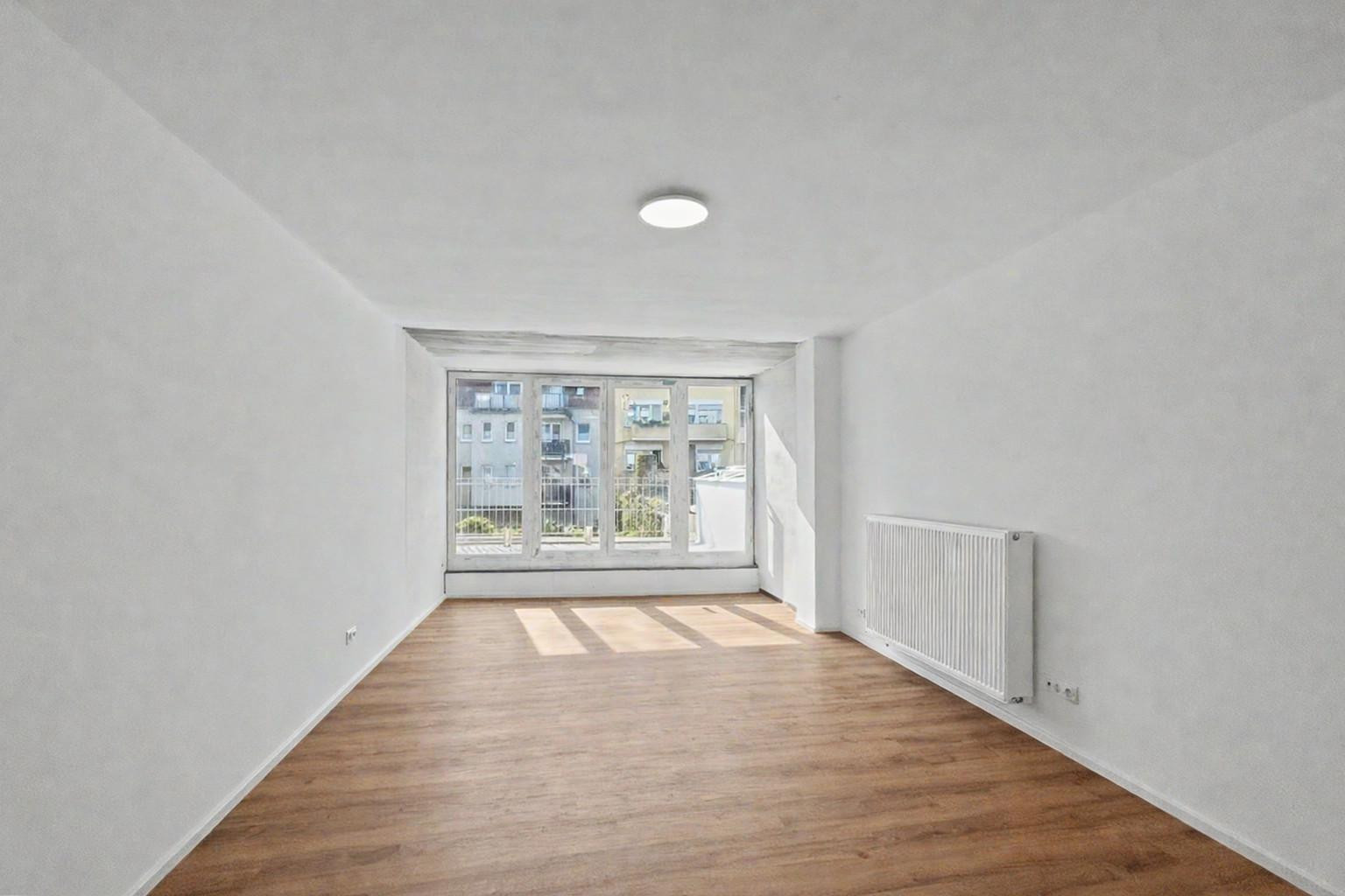 50737 Köln (Weidenpesch) – Nordrhein-WestfalenThis high-quality, fully renovated apartment on the first floor is available for the first time since its comprehensive modernization, offering a modern home of approximately 96 square meters with plenty of light, clean lines, and a well-thought-out layout. This apartment provides ideal conditions, especially for young couples who want to combine urban living with comfort. The spacious living and dining area with an open-plan kitchen is the central hub of the apartment. Large windows create a bright, welcoming atmosphere and provide a sense of openness with various design possibilities. Two well-proportioned bedrooms offer ample space for individual use, whether as bedrooms, home offices, or dressing rooms. A particular highlight is the generous west-facing terrace, accessible from both bedrooms, which is especially inviting for relaxation in the afternoons and evenings. The modern daylight bathroom features a walk-in shower and impresses with its clean, timeless design. Throughout the entire apartment, high-quality vinyl flooring has been installed, creating a pleasant living environment while also being easy to maintain and durable. Furthermore, the building has been comprehensively upgraded in terms of energy efficiency. New, efficient plastic windows, a modern heat pump, and facade insulation contribute to a contemporary and energy-efficient living climate. The apartment is located in the Weidenpesch district of Cologne, a popular area with excellent transport links. The nearest train station is just a few steps away, providing quick access to the city center. Shops and amenities are located in the immediate vicinity. A parking space is not included with the apartment, but public parking is available nearby. A private storage room will also be assigned to the apartment in the future. The apartment is available for immediate occupancy and offers ideal conditions for anyone who wants to move into a modern home without the hassle of renovations.
