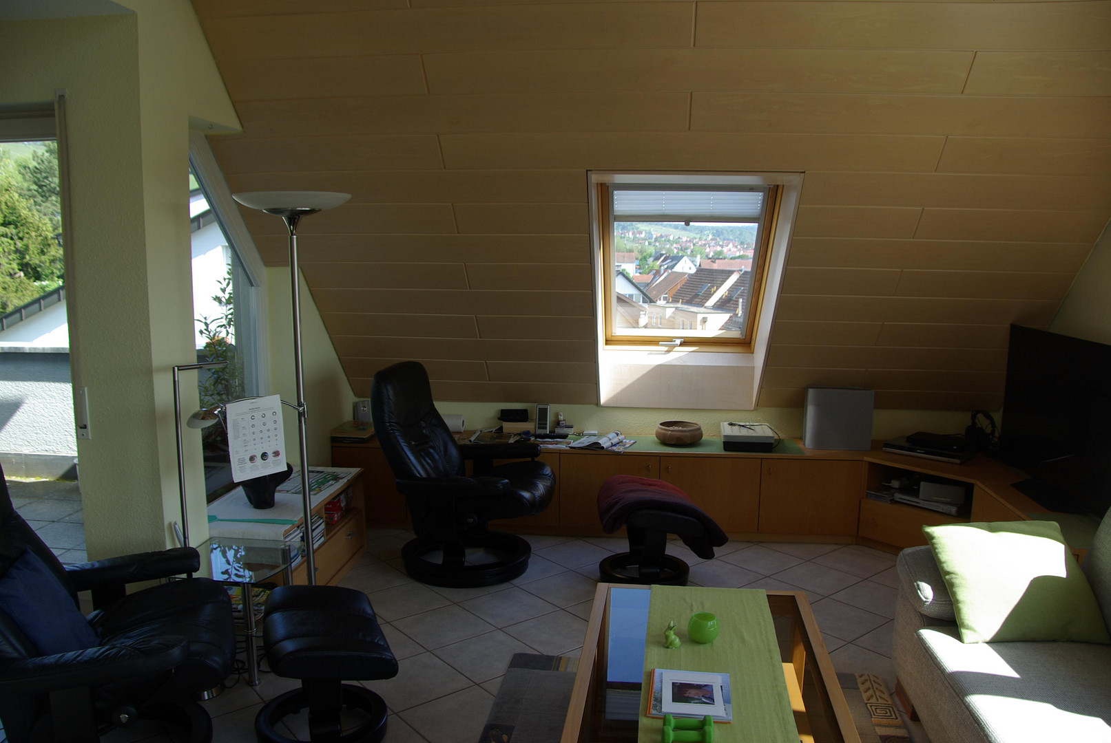 Burghaldenstraße 13, 71384 Weinstadt (Beutelsbach) – Baden-WürttembergThis attractive maisonette apartment, located on the 2nd and 3rd floors, boasts stunning, unobstructed views of the vineyards and the adjacent Schurwald forest. The apartment features four and a half inviting rooms, including a bathroom with natural light, a separate guest toilet, and a storage room. The property is situated in a building constructed in 1999 and is heated by a central heating system. The interior features a built-in kitchen that is available for purchase. The apartment is located on a quiet, residential street with limited traffic. The apartment is on the 2nd and 3rd floors of a well-maintained building with six apartments, built in 1999. The apartment's south-facing balcony, with an electric awning and a glazed overhead structure, offers beautiful views of the vineyards. The apartment creates a very pleasant living atmosphere. It is very bright, friendly, and inviting. The layout of the apartment is very well designed. The upper floor includes the living/dining room, the kitchen, two children's rooms/offices, a storage room with a sink (which could be converted into a bathroom), a closet, the balcony, and a guest toilet. The attic level features a large bedroom, a bathroom with natural light (with a double sink, a corner bathtub, a shower cabin, and a toilet), and an elevated area used as a reading nook with an armchair and bookshelves. The apartment also includes a separate basement storage room with a window (approximately 10 square meters) providing practical storage space, and a single garage with a parking space in front (purchase price €20,000).