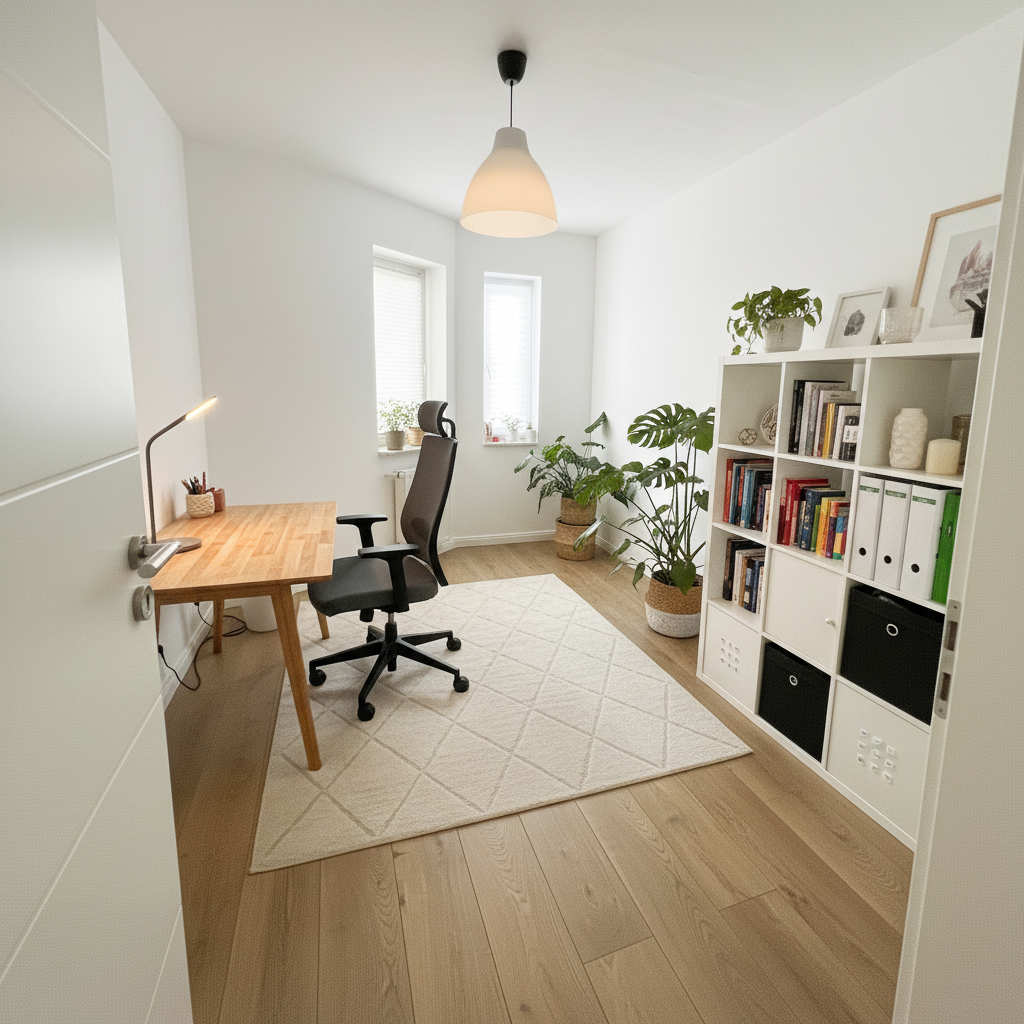New flooring with an oak wood-look finish.