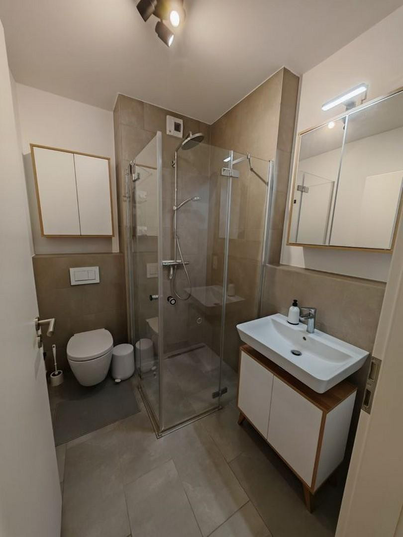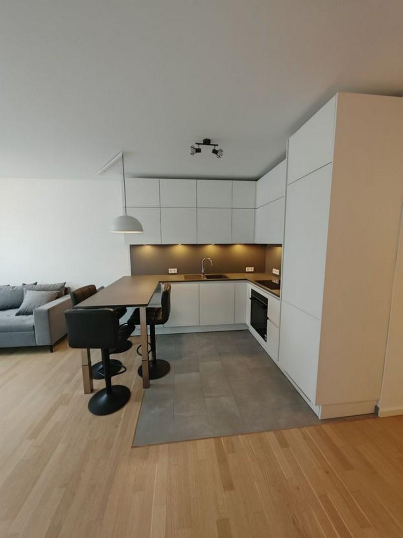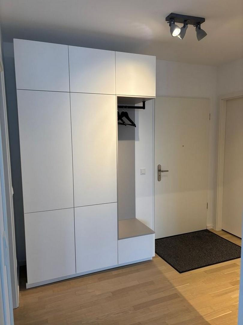 10117 Berlin (Mitte)This bright and well-designed apartment, located on the 6th floor, features a light-filled living and dining area with a modern built-in kitchen. It also boasts a quiet balcony accessible from both the living room and the bedroom, offering views of the Berlin skyline, as well as a separate utility room that includes a washing machine. The apartment is being offered furnished for the initial rental period, including all the furniture and items shown in the photos. The furnishings include, in particular, the built-in kitchen, the bed and wardrobe in the bedroom, the corner sofa in the living room, the coat rack in the hallway, two wall cabinets and a vanity unit in the bathroom, the washing machine, and the shelving unit in the utility room. A private storage room is available in the basement.