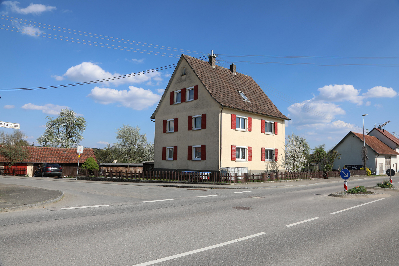 88371 Ebersbach-Musbach (Ebersbach) – Baden-WürttembergThis two-family house with 3 living levels, each approximately 68.83 square meters, has one separate apartment on the ground floor and one on the first floor. On the second floor, all rooms have sloped ceilings. In addition to 4 parking spaces, there is a garage, a shed, a garden house, wood storage areas, and a barbecue area. The balcony solar power system is included in the sale. Basement: The house is fully underground. It includes 1 laundry room, 3 storage rooms, a 6000-liter sealed heating oil tank in a completely bricked-in room, and 1 sauna in the basement. Ground Floor: The entrance area leads to the ground floor apartment, the basement, and the first and second floors, as well as to a stage area. The ground floor apartment consists of a kitchen, bedroom, living/dining room, bathroom with shower and separate toilet. The kitchen (Inhofer, purchased in 2018) and the Olsen fireplace are included in the purchase price. First Floor: The apartment also consists of a kitchen with a large terrace, a bedroom, a living/dining room, a bathroom with a bathtub and a separate toilet. The kitchen (Braun, purchased around 2016) without a refrigerator, as well as the Olsen fireplace, are included in the purchase price. Second Floor: One room with a sink has dimensions of 3.28 x 3.10 and has a sloped ceiling (we use it as a guest room). Another room, where the water supply and drainage have been disconnected, has dimensions of 3.35 x 3.29 and has a sloped ceiling (we use it as an office). The large room, approximately 33 square meters, is currently used as a dressing room. The stage area is used by us for storage and has a flat roof.