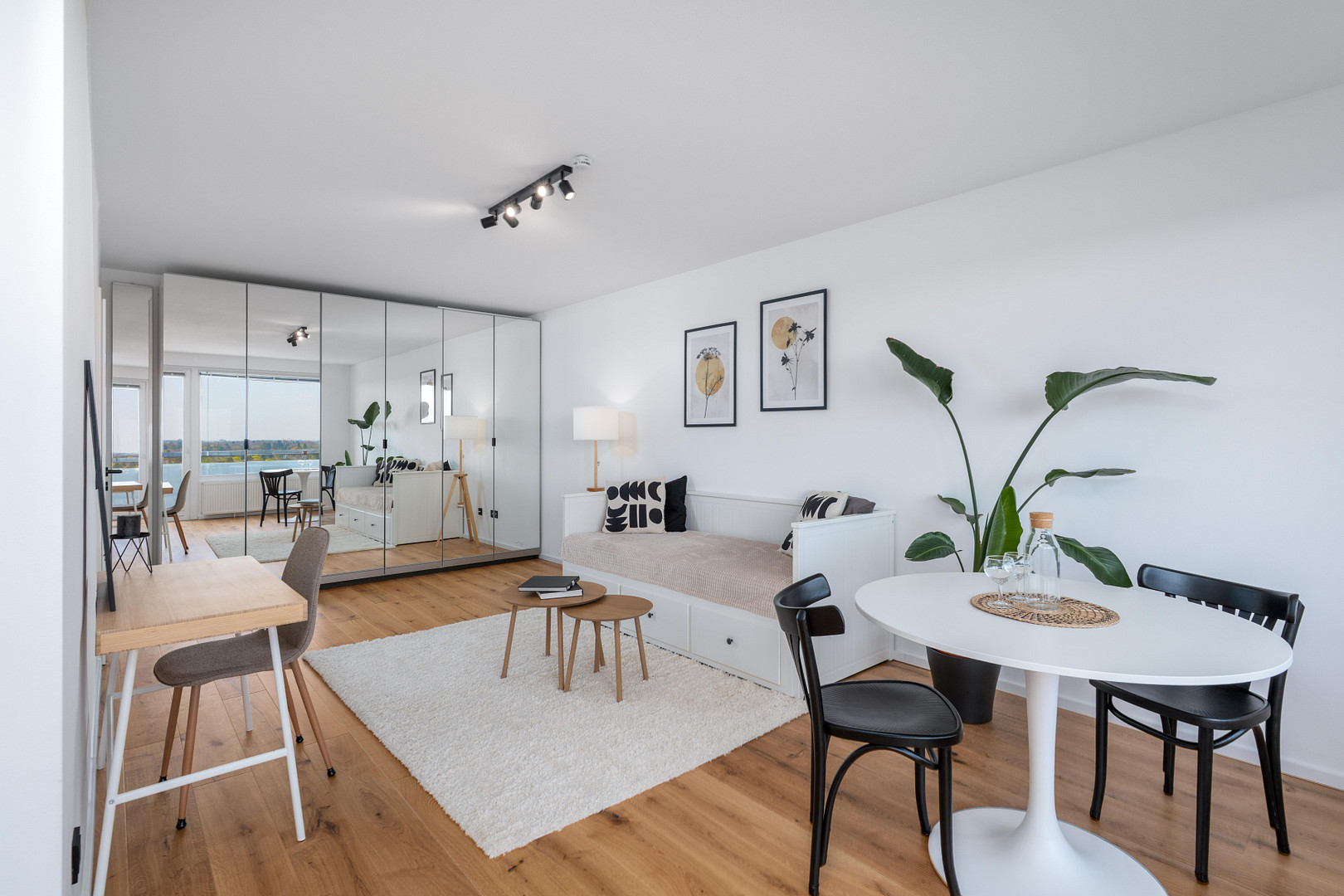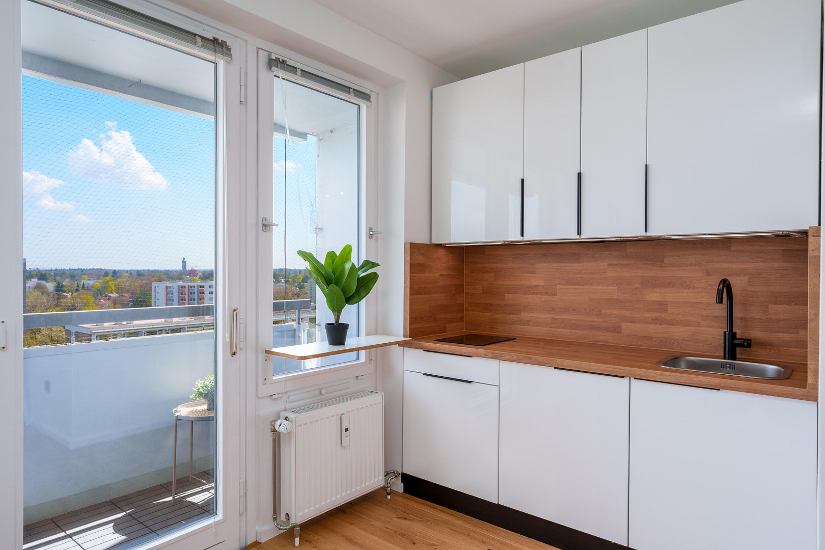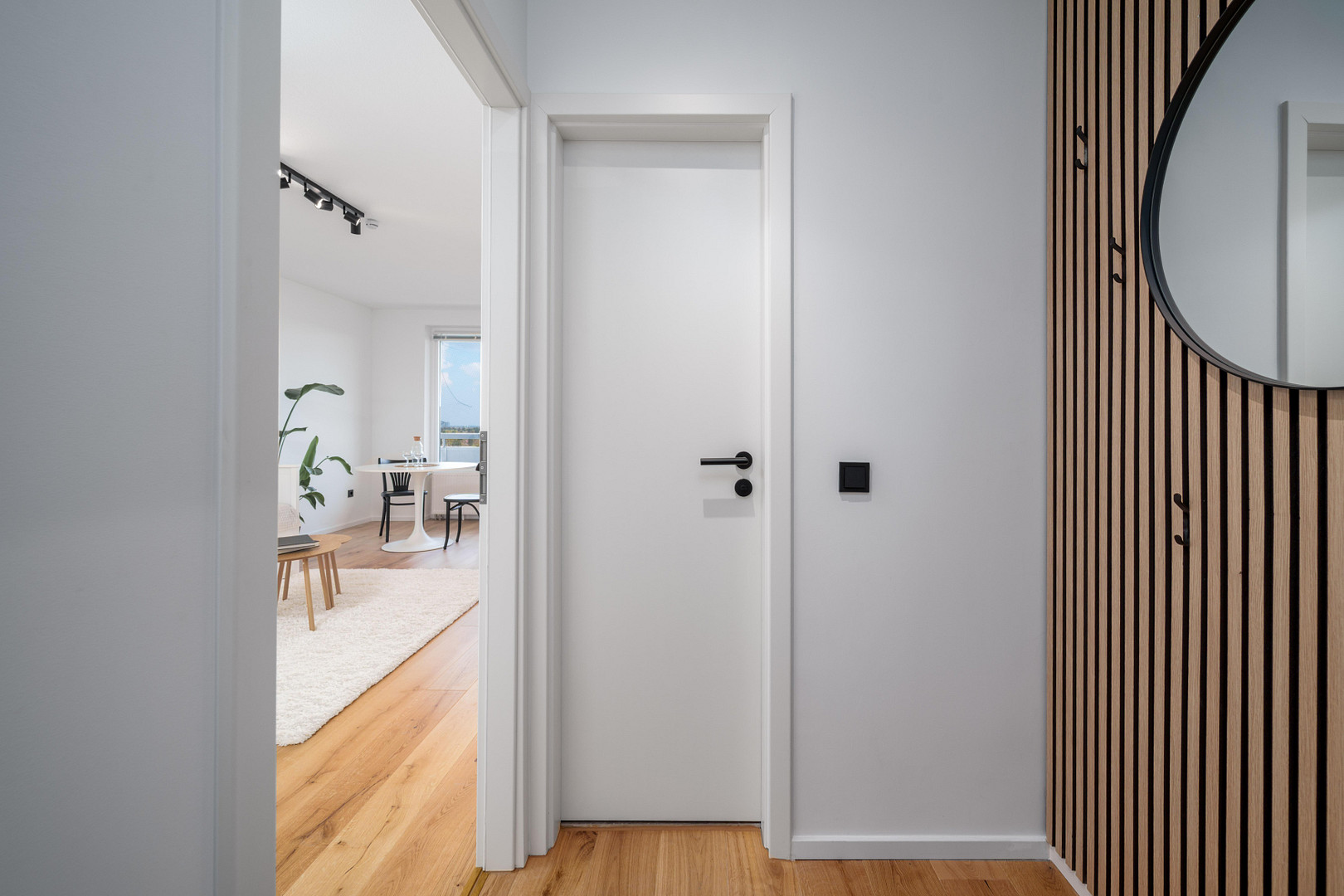 - Flooring & Walls: High-quality solid oak parquet flooring (engineered wood), and freshly plastered walls.