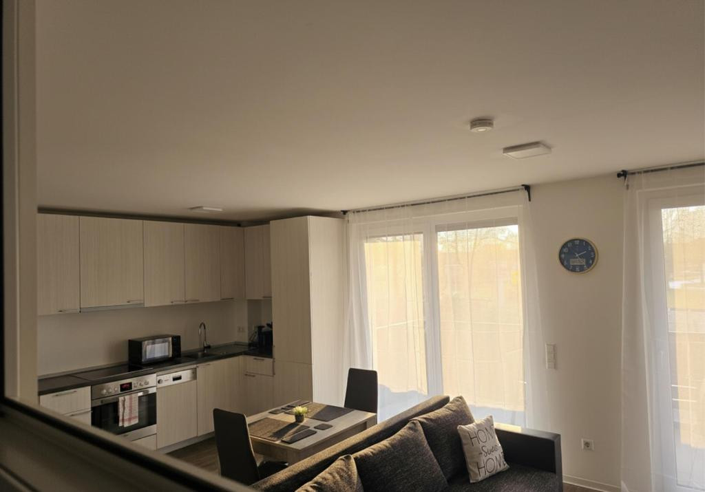 - Two rooms, new construction, balcony, open-plan kitchen.