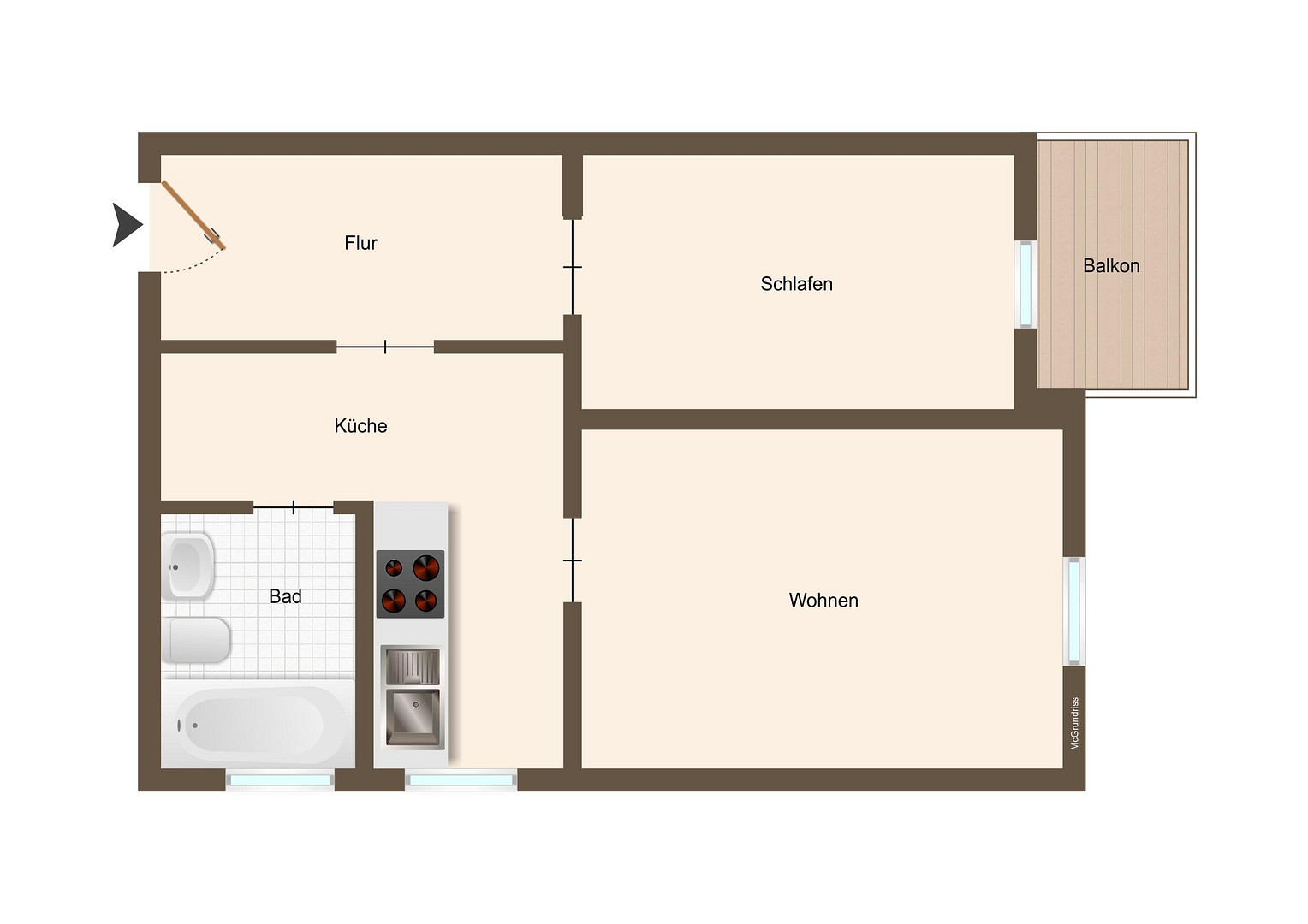 01159 Dresden (Cotta) – SachsenThis beautiful, modern, and fully furnished 2-room apartment on the 2nd floor impresses with its clear, rectangular layout, which allows for optimal use of the 56 m². The apartment is completely furnished – including a bedroom with a bed and wardrobe, and a living room with a sofa, side table, and other furniture – making it perfect for immediate move-in. The spacious hallway leads to all rooms and provides a pleasant flow. The bright living room offers direct access to the balcony, which is ideal for relaxing outdoors. The modern fitted kitchen is fully equipped and can be either open-plan, integrated into the living area, or separately accessible – perfect for comfortable cooking. The bedroom is bright and practically furnished, so you can move in immediately and feel at home. A special highlight is the daylight bathroom with a bathtub, which features friendly, modern materials. The apartment is centrally located in Dresden-Löbtau, with excellent access to public transportation and shops. Thanks to its good energy efficiency, you will also benefit from reduced heating costs. Overall, you can expect a bright, modernly furnished apartment that is ready to move in immediately, with a good layout, a balcony, and a fitted kitchen – ideal for singles or couples who want to live comfortably, furnished, and close to the city. The building community looks forward to welcoming you!