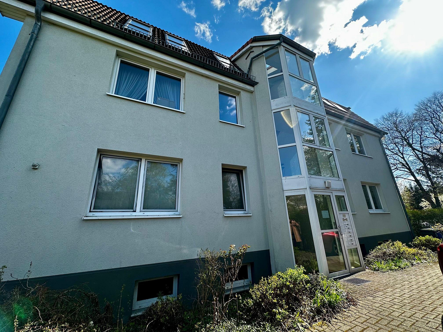 Ulmenstr. 111, 12621 Berlin (Kaulsdorf)The bright, two-room apartment is located in a building with 6 apartments and a surrounding garden. The two parking spaces for cars are located at the back of the property. The apartment receives light from both the east and the west. The balcony faces the quiet garden side.