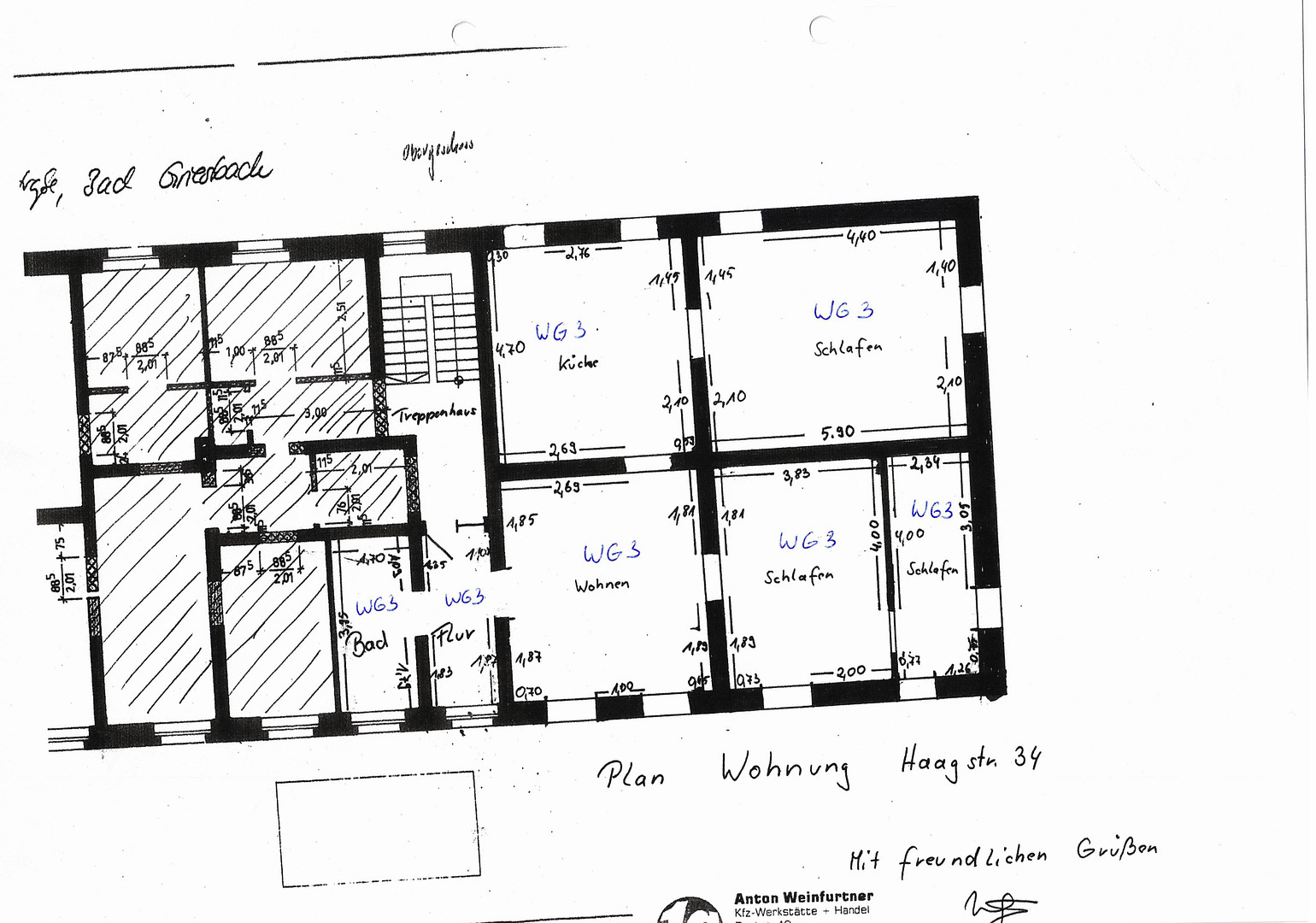 Haagstr.34, 94086 Bad Griesbach (Bad Griesbach i. Rottal) – BayernThe residential and commercial building, constructed in 1953 and partially modernized, is situated on a property of approximately 415 m² in a central location.