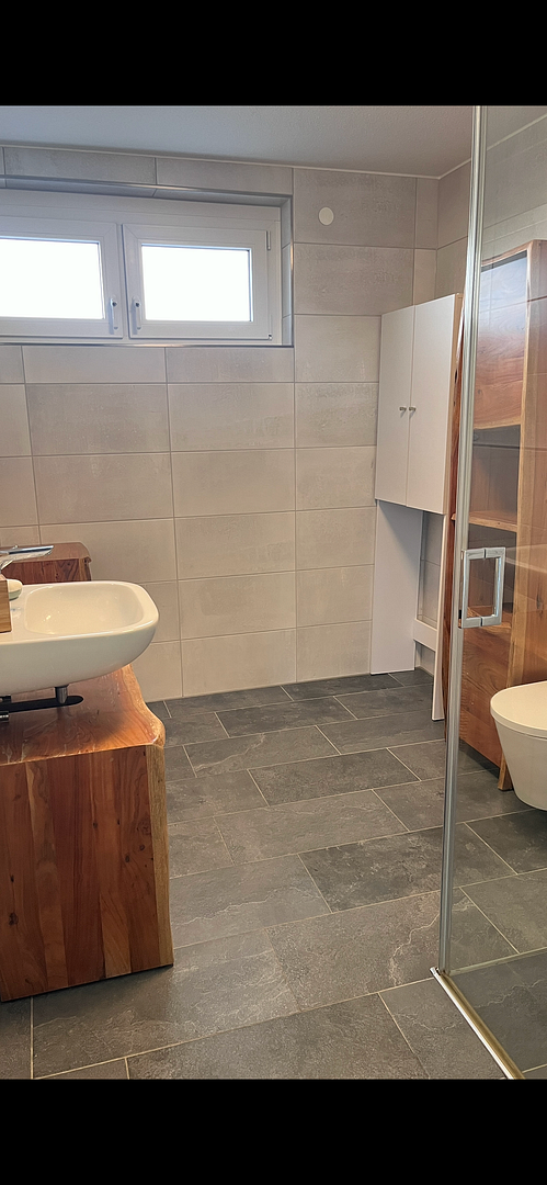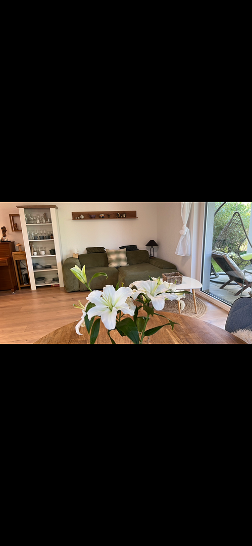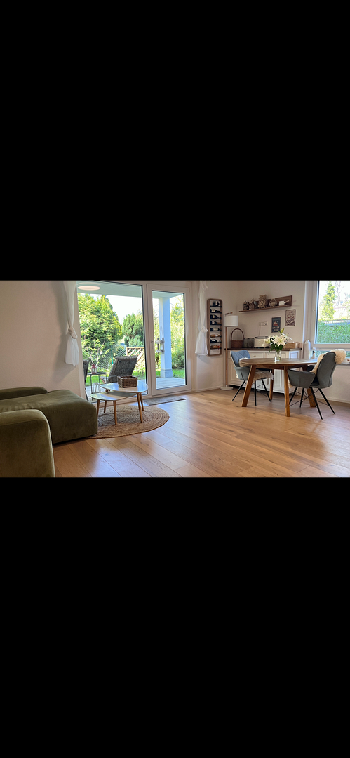 70599 Stuttgart (Plieningen) – Baden-WürttembergThis beautiful, modern 4-room ground-floor apartment (built in 2019) is located in a quiet, family-friendly residential area of Stuttgart-Plieningen, near the stunning Hochheim Botanical Garden. It offers high-quality finishes, a well-designed layout, and a pleasant private garden next to a river and forest. The bright and comfortable living and dining area is the heart of the apartment and offers direct access to the terrace and the adjacent garden. The large, floor-to-ceiling windows offer views filled with greenery. Electric blinds throughout the apartment and underfloor heating with premium parquet flooring create a dream living space. The open-plan kitchen is equipped with a modern, pastoral-style built-in kitchen and branded appliances. The master bedroom and the other two bedrooms (one of which can also be used as a study) offer flexible usage options and are equipped with three built-in wardrobes. The modern daylight bathroom features a spacious, comfortable walk-in shower and a separate connection for a washing machine. You won't have to run around in the basement to do laundry. In addition, the apartment also has a separate guest toilet.