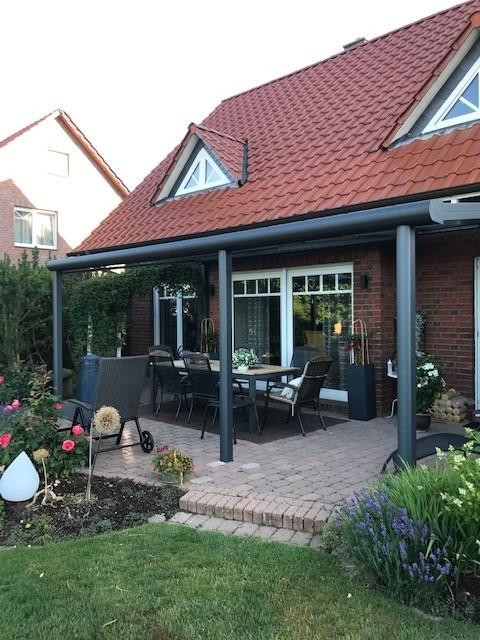 - Terrace with a large roof (aluminum/safety glass), as well as an electric/remote-controlled awning.