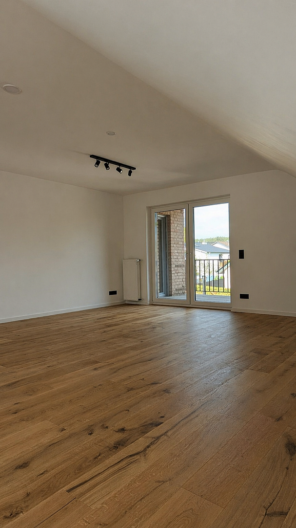 53797 Lohmar – Nordrhein-WestfalenModern, bright, and exclusive – these are the words that best describe this unique living experience in the heart of Lohmar. This spacious attic apartment was built in 1992 using solid construction methods and completely renovated in 2026 to a high standard, adapting it to a more sophisticated living environment. Its central location offers the perfect combination of urban vibrancy, peaceful living, and high-quality comfort. With a living area of approximately 92 m², this apartment provides ample space for you to create your ideal home. Featuring three rooms, including two comfortable bedrooms and a welcoming living room with an open-plan kitchen, the layout is generous and well-designed. Step inside and be captivated. From the moment you enter, you'll notice the perfectly harmonious and modern design: the smooth walls, combined with the warm, elegant oak parquet flooring, create an unparalleled sense of space. A real highlight is the elegant loft-style glass door with black framing, which visually opens up the spacious living area. The thoughtfully designed open-plan kitchen invites convivial cooking evenings and transforms the space into the central hub of home life. The living area is extended by a large, covered balcony, offering an idyllic retreat where you can enjoy sunny hours in a private setting. The bathroom also continues the elegant design concept. High-quality, large-format tiles complement a walk-in shower with a nearly flush floor, and its glass partition is enhanced with a durable lotus coating for a flawless appearance. A modern, rimless wall-mounted toilet and high-quality sanitary fixtures complete the picture. The bathroom also provides space for a tumble dryer and a washing machine. A separate guest toilet with matching fixtures in the hallway area further enhances the bathroom. Technically, the living space is also state-of-the-art. The electrical system has been modernized and features an elegant, black switch range that creates a striking contrast with the new, high-quality white interior doors with black hardware. The new triple-glazed facade windows, combined with electric roller shutters, not only provide a peaceful environment but also improve energy efficiency. In the kitchen and bathroom, the casement windows were already replaced in 2012. The gas-powered central heating system dates back to 2014 and ensures a comfortable climate in all rooms. This exceptional offer is further enhanced by ample storage space: in addition to a private basement storage unit and a convenient underground parking space for your vehicle, the apartment also benefits from exclusive rights to use the attic space above the apartment – an invaluable asset for additional space. Don't miss the opportunity to make this unique property your new home.