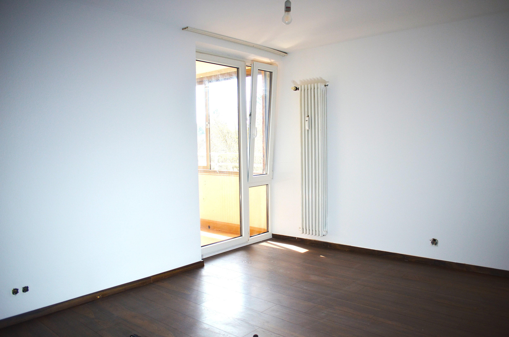 Gustav-Mahler-Weg 9, 85598 Baldham Vaterstetten (Baldham) – BayernThe apartment, partially renovated but still lacking a new fitted kitchen, is located on the 5th floor of the residential building. It offers a beautiful view to the west, overlooking the treetops of the surrounding area, and enjoys afternoon and evening sunlight. The apartment is very quiet. It has a classic layout: the small kitchen is located between the living room and the bedroom. The space is currently empty and offers design freedom for the future kitchen. The laminate flooring runs throughout the two rooms and the hallway. The west-facing balcony is more than 5 meters long, partially glazed, allowing you to sit outside comfortably and sheltered from the wind even in less warm seasons, and to create a green oasis. The living room, with its south-facing window and large window front to the west overlooking the balcony, is bright and welcoming. It is large enough to accommodate a dining area or a home office workspace. The bedroom, like the living room, has a door to the balcony and is large enough to accommodate a large wardrobe, or a spacious children's room or office. The residential building is very well-maintained and features a large green area. This apartment is suitable for single individuals, couples, or single parents looking for a place to live. It would also be a good investment for renting out. The apartment includes a parking space in the underground garage, with convenient access for women to the garage entrance. The parking space can be excluded from the purchase price if desired.