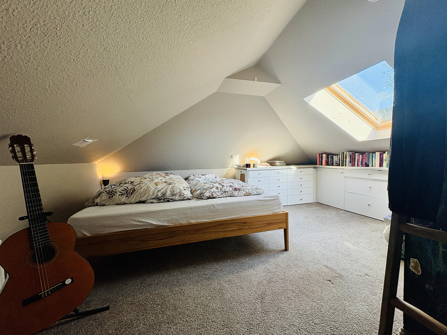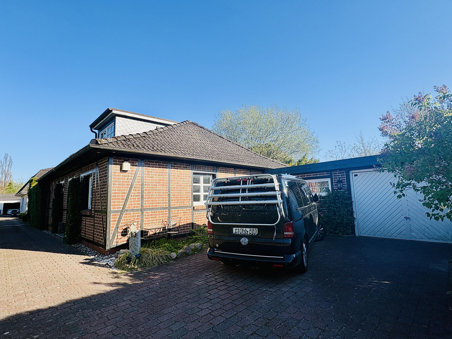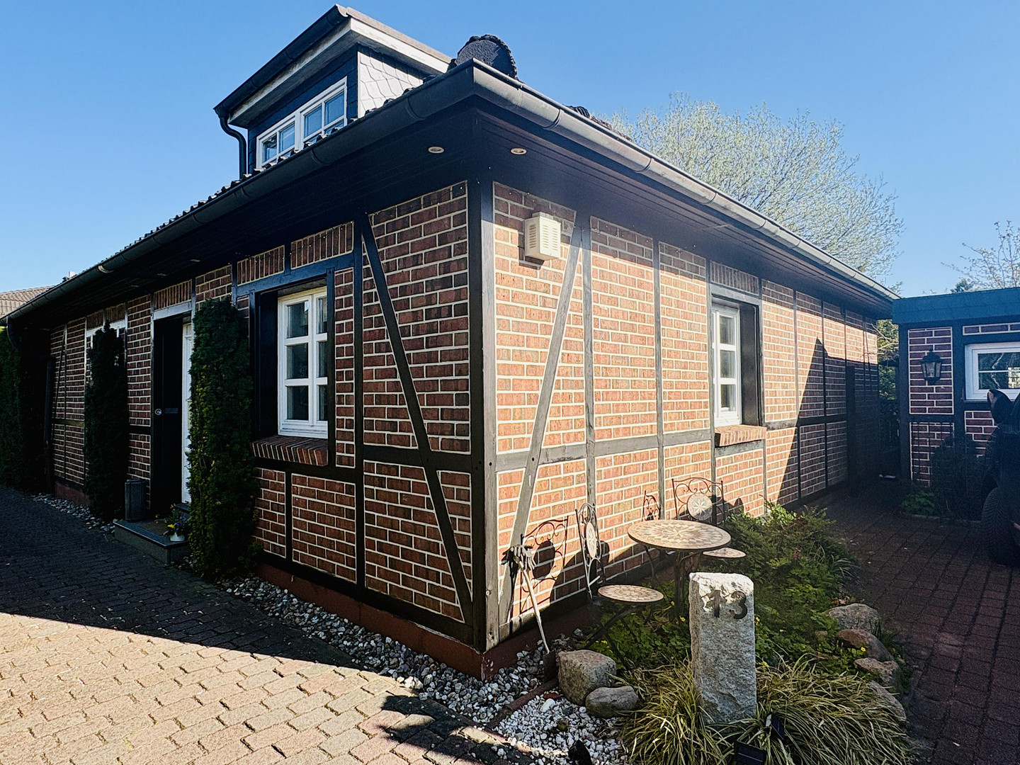 22395 Hamburg (Bergstedt)This charming detached house, located in the popular Hamburg district of Bergstedt, combines the unique character of a half-timbered house with modern living comfort and a family-friendly environment. As soon as you enter, you are greeted by a spacious hallway that creates a feeling of openness and warmth. The heart of the house is the bright and airy living, dining, and kitchen area: This is where family and friends gather – whether cooking together at the kitchen island or relaxing on the sofa with a view of the greenery. The modern fitted kitchen, with its high-quality appliances and generous workspace, blends harmoniously into the open living area and provides ideal conditions for those who enjoy cooking and entertaining. The house has a total of three well-proportioned rooms, as well as a living space in the attic that is perfect as a bedroom or a quiet retreat. A special highlight is the heated and renovated outbuilding, which is ideal for use as a home office, hobby room, workshop, or additional storage space. This flexible use is a real added value. The property also impresses with its outdoor areas: The cozy south-facing terrace invites you to relax, while the garden offers plenty of space for children, hobbies, and recreation. The fully enclosed property provides privacy and security.