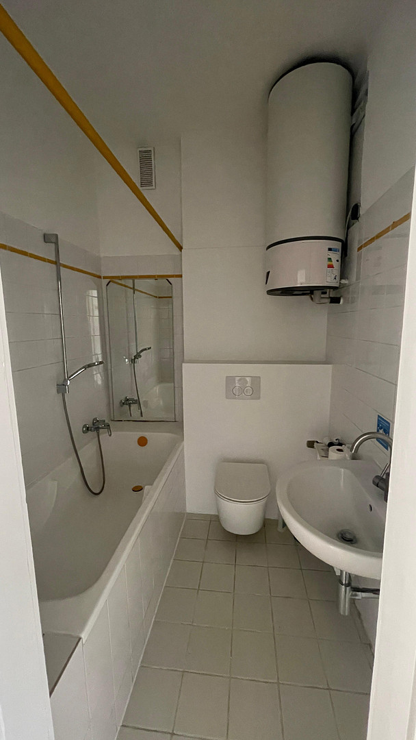 The apartment features a built-in kitchen, the cost of which is already included in the rent. High-quality, genuine hardwood parquet flooring is installed throughout all living areas, creating a warm and elegant atmosphere.