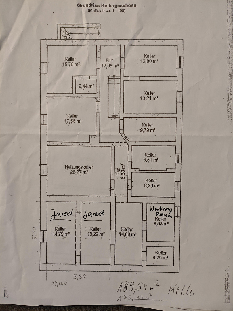 Apartment 2: Approximately 115 square meters, available and in need of renovation.