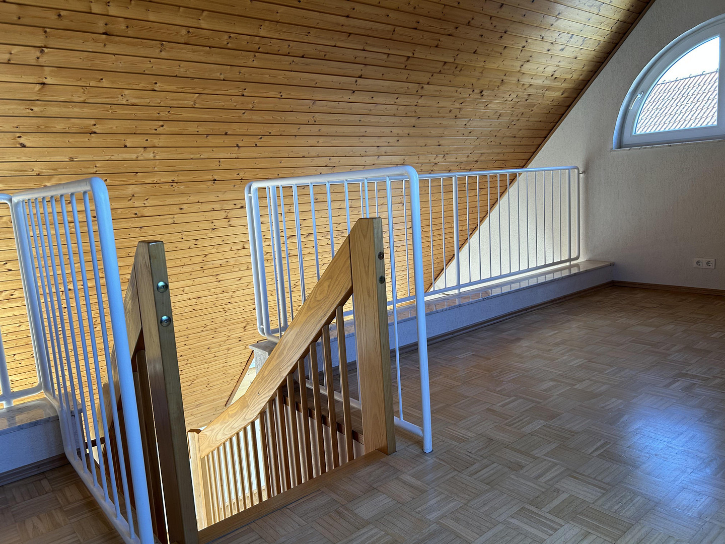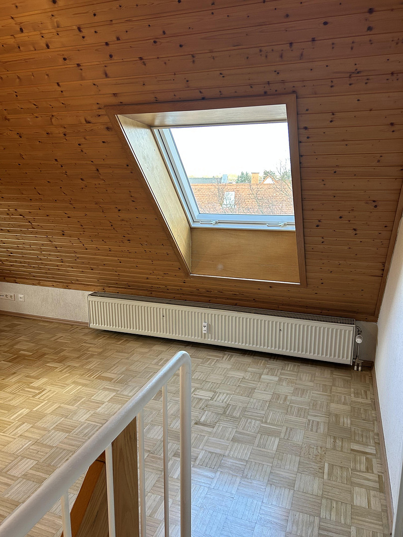 65931 Frankfurt am Main (Zeilsheim) – HessenImmediately available and modernized 2.5-room maisonette apartment on two levels, with a balcony, open gallery, and underground parking space. With approximately 73 square meters of living space, the apartment offers a unique living experience, more akin to a small house than a typical apartment. The open layout, the high-quality solid wood staircase, and the gallery give the apartment its individual character. The bright living and dining area, with its large windows, is the heart of the apartment. From here, you have direct access to the balcony with an awning, which invites you to relax outdoors. The open gallery on the upper level is ideal as a bedroom, home office, or personal retreat. The bright bathroom features a bathtub, a separate shower, and a connection for a washing machine. The apartment is complemented by a separate guest toilet and a practical storage room within the apartment. Numerous modernizations have been carried out in recent years. Among other things, the windows, skylights, awning, and parts of the electrical system have been renewed. The central heating system was modernized in 2021. The apartment also includes a private cellar room, an underground parking space, and the use of a communal laundry and bicycle cellar. Private sale – no additional real estate agent commission will be charged to the buyer.