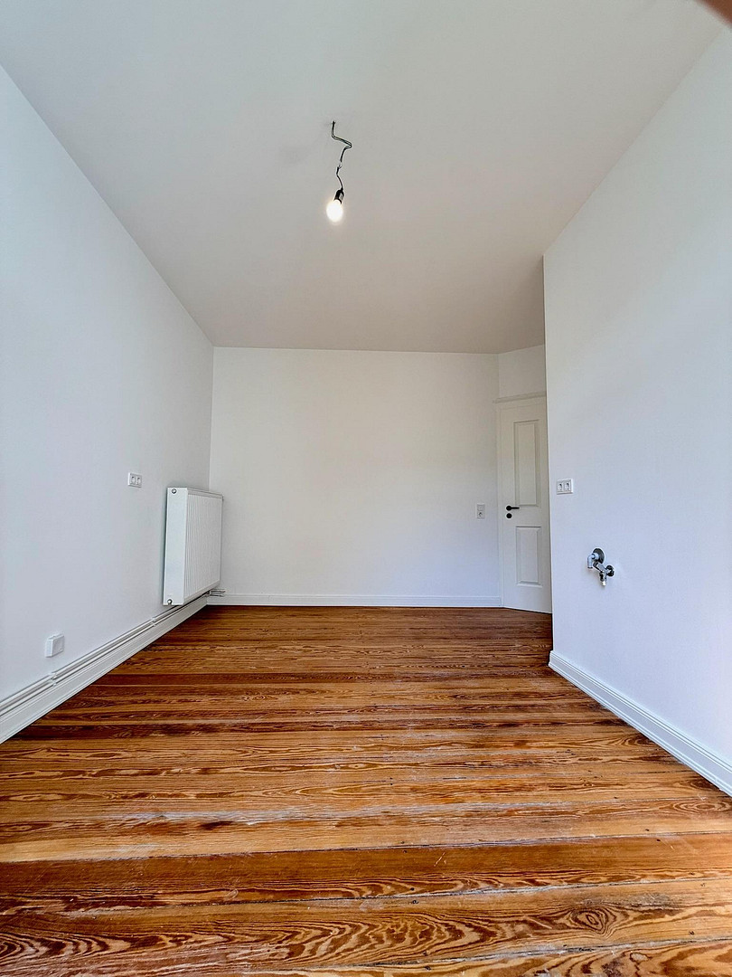 Julius-Ertel-Straße 18, 21107 Hamburg (Wilhelmsburg)This high-quality, completely renovated 2-room apartment, with approximately 63 square meters of living space, is located in a stylishly modernized historic building and combines classic architectural charm with modern living comfort. It is ideal for singles, couples, or investors who value quality and sustainable renovation. During the comprehensive renovation, particular attention was paid to efficiency, durability, and functionality. The facade received cavity wall insulation, which contributes to improved energy efficiency and a comfortable indoor climate throughout the year. All pipes and the entire electrical system have been renewed and meet current standards. The windows have also been replaced with modern, triple-glazed elements, significantly improving both thermal and sound insulation. Inside, the apartment impresses with its well-thought-out layout, which allows for a clear separation between the living and relaxation areas. Large windows create bright, welcoming rooms and a pleasant living atmosphere. A particular focus was placed on practicality: each room has numerous electrical outlets (approximately...). 6–8 per room), allowing for flexible furniture arrangements. The kitchen is optimally prepared and, thanks to its thoughtful design and numerous connections, offers excellent conditions for individual customization. The original wooden flooring has been meticulously restored, giving the apartment a warm, authentic feel. The modern bathroom complements the overall picture with contemporary fixtures and a spacious atmosphere. The quiet location on a one-way street ensures relaxed living away from the hustle and bustle, while shops, cafes, restaurants, and green spaces are easily accessible. As a newly renovated apartment, it offers an ideal combination of urban comfort, modern technology, and classic old-building charm – ready to be filled with individual life.
