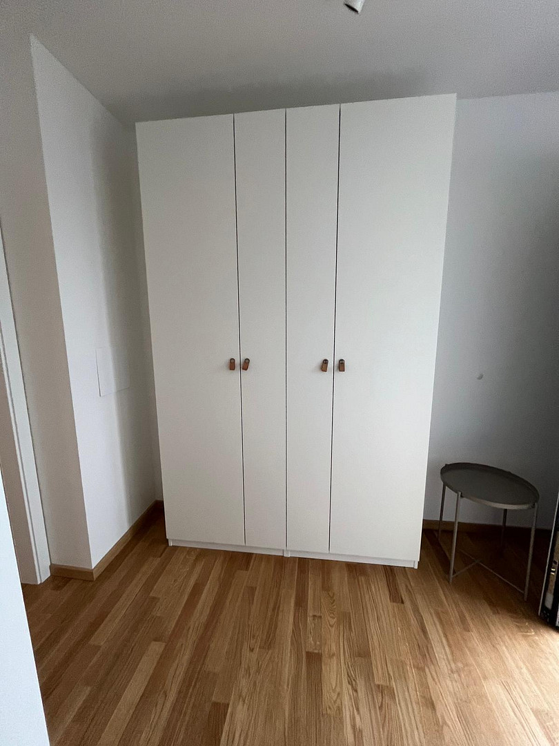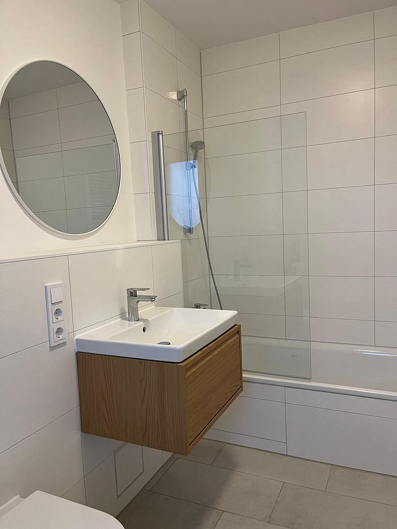 This is a very beautiful, bright one-bedroom apartment (38.6 square meters) in a new building (first occupancy in November 2024) in Haar, right on the city border with Munich (Waldtrudering). The apartment is fully furnished and impresses with its modern design, clean lines, and warm atmosphere. Large terrace doors provide plenty of natural light throughout the day. Highlights of the features:
