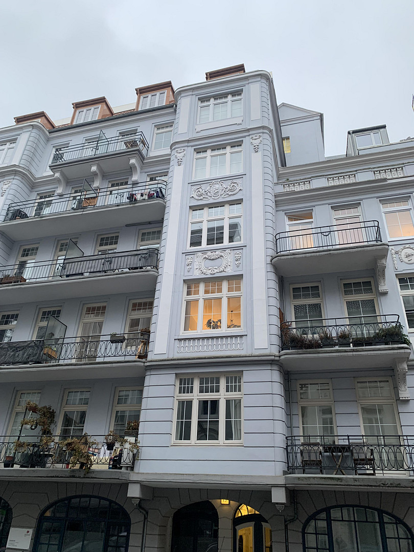 The property, located on the corner of a main road, is situated in the popular, very green, and central district of Rotherbaum in Hamburg. The university district and the University of Hamburg are located right next door. Its proximity to the beautiful Planten un Blomen park allows for easy access to outdoor recreation, almost right outside your doorstep. The neighborhood is lively, young, and vibrant, and the Hamburg city center is perfectly accessible by bus, on foot, or by bicycle in just a few minutes. The Dammtor train station is a 10-minute walk away, which is extremely convenient for commuters.