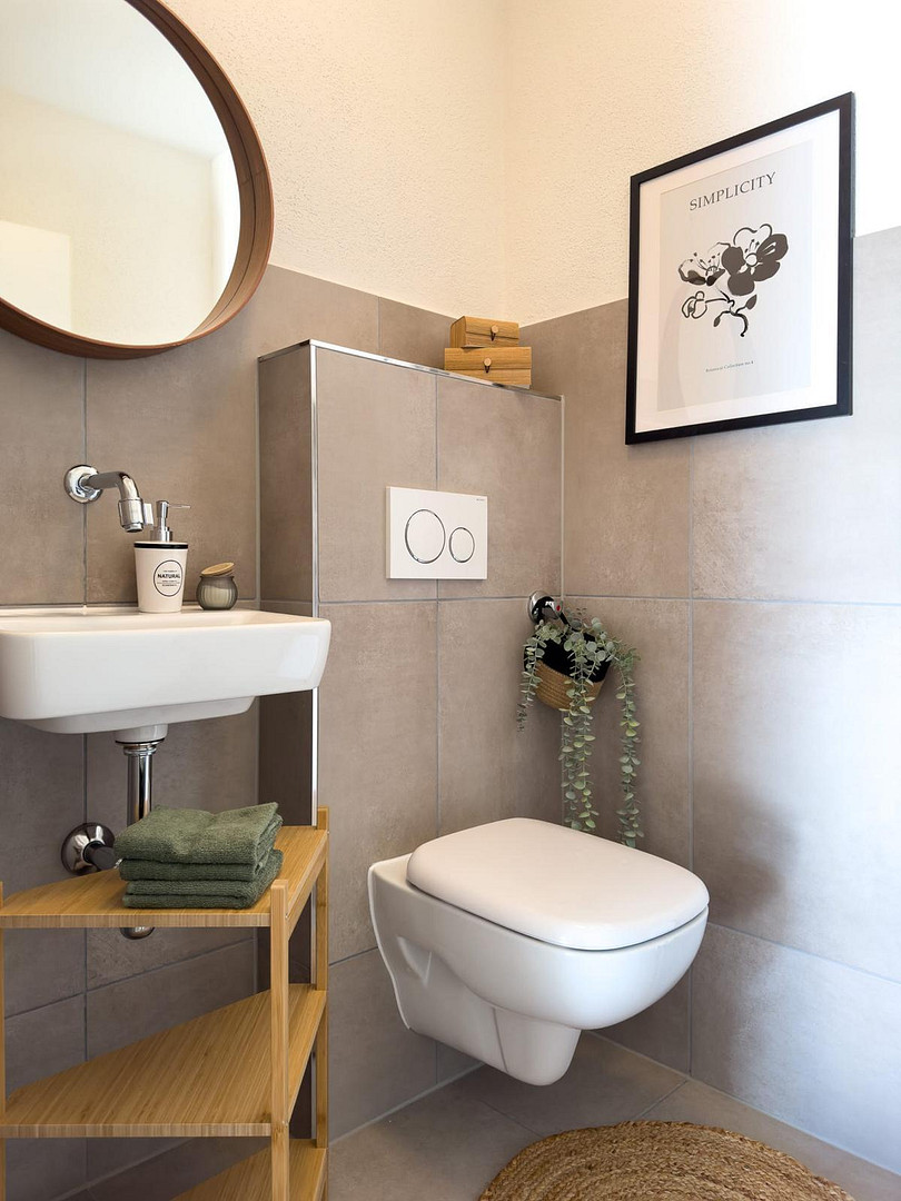 - Washing machine connection optionally available in the bathroom