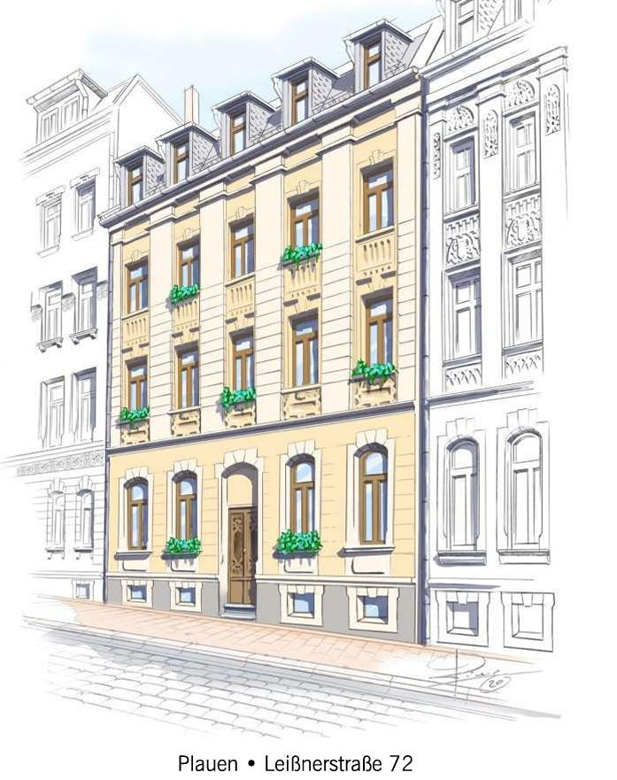 Leißnerstraße 72, 08525 Plauen – SachsenWelcome to your new home! This beautiful 2-room apartment, located in a lovingly restored and protected historical building on Leißnerstraße, combines historical charm with modern living comfort at the highest level.