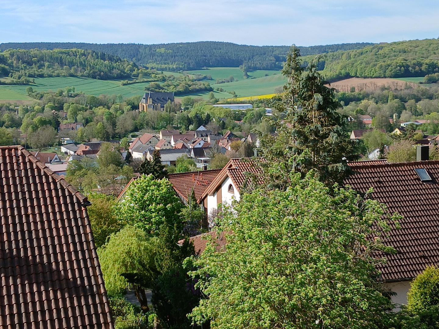 The house is located in a quiet, family-friendly residential area on the outskirts of Arnstein, boasting a prime south-facing hillside location and offering stunning views.