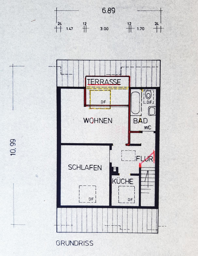 + Electrical wiring: standard 1970, standard 1990 in the top-floor apartment.