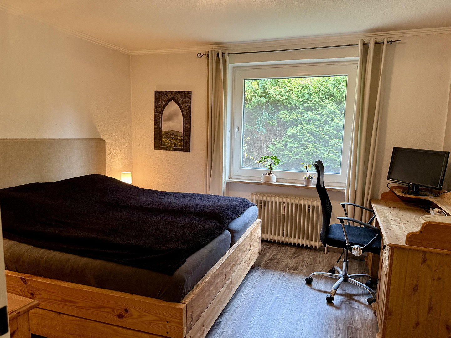 22179 Hamburg (Bramfeld)This exceptional apartment in Hamburg-Bramfeld combines the spaciousness of a house with the advantages of apartment living. The bright living and dining area, the large 30 m² southwest-facing terrace, and the new, high-quality lift-and-slide door installed in 2025 (with double glazing and insect protection) across the entire front, create an exceptionally open and inviting living environment. Here, you will enjoy a peaceful, green setting with plenty of privacy. A real highlight is the versatile hobby room and home office area, measuring approximately 43 m². This area is finished to a high standard and features a complete wall with approximately eight meters of built-in cabinets with sliding doors, as well as an adjacent storage room (5.5 m²). Additionally, there is the possibility of creating a second bathroom with a bathtub in this area. This opens up an exceptionally flexible living space, ideal as a retreat, workspace, or an extension of the living area. The apartment also features a quiet bedroom and a well-maintained bathroom with a shower. The transition between the indoor and outdoor spaces is particularly well-executed: the terrace with its garden view feels like an additional living space, inviting relaxation, dining, and spending time. This gives the apartment a true "home within a home" feel, with plenty of space and individuality. The apartment is located in a quiet, established residential area in Hamburg-Bramfeld, with good infrastructure and a pleasant living environment. It is ideal for buyers who appreciate spacious living, tranquility, and unique features.