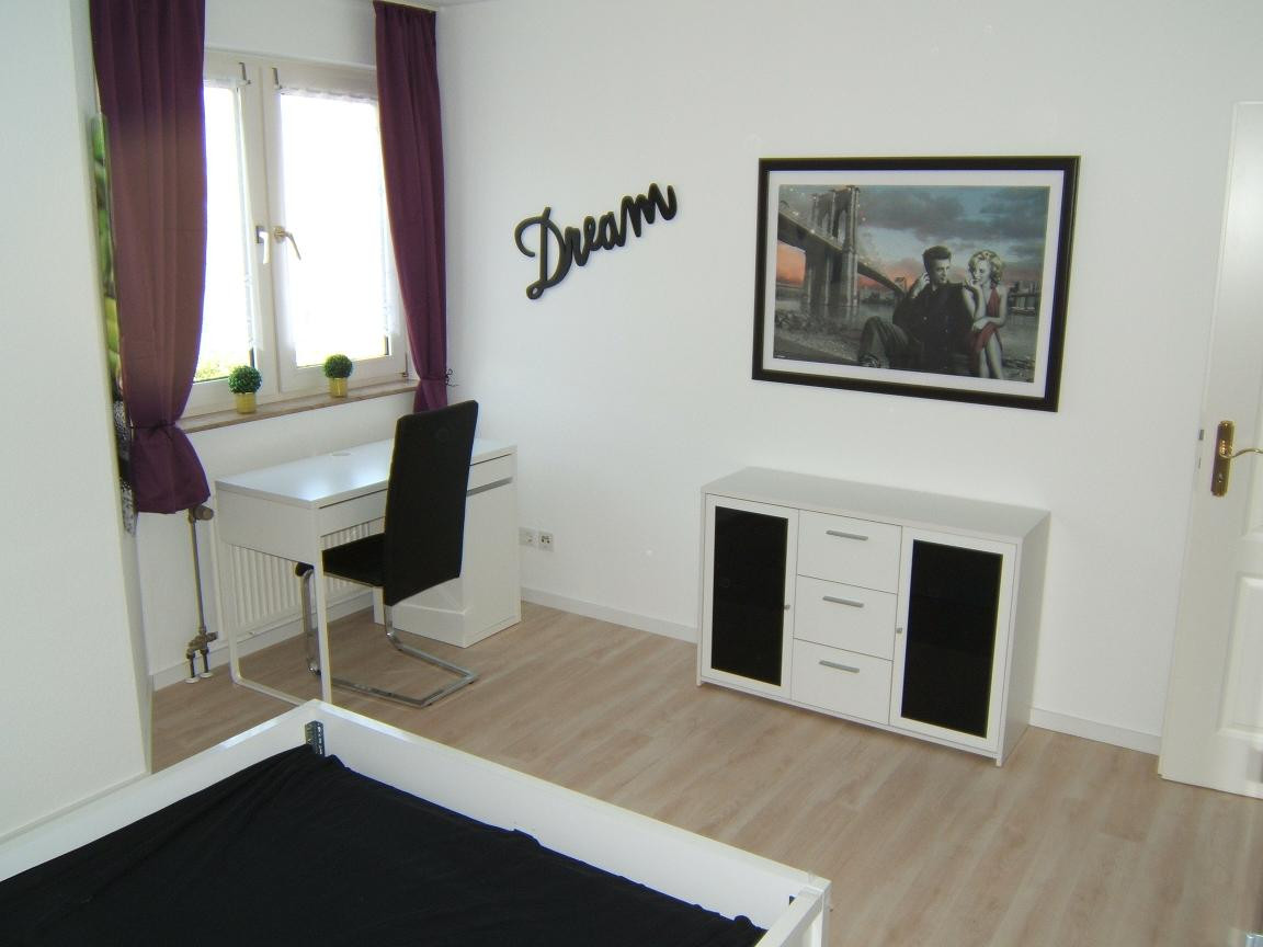 - Schlafzimmer: Bett, Kleiderschrank, Schreibtisch und Kommode.