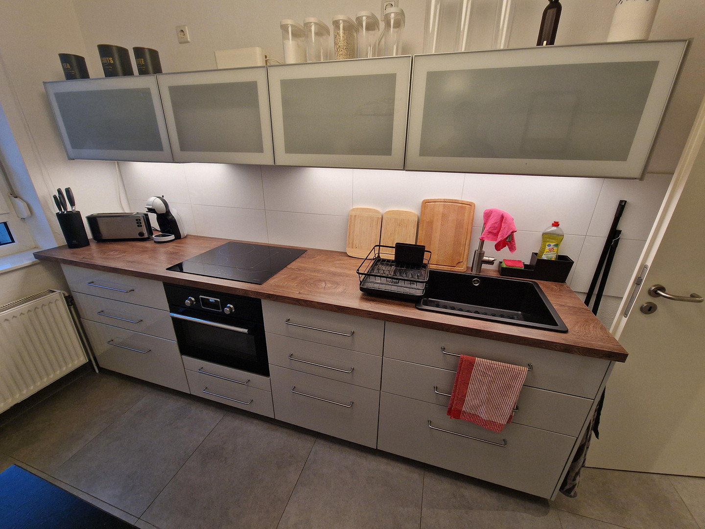 Die im Jahr 2021 installierte IKEA-Einbauküche ist mit einem Induktionskochfeld, einem Backofen mit Mikrowellenfunktion sowie einem Kühlschrank ausgestattet. Darüber hinaus können die auf den Fotos ersichtlichen Sitzmöbel sowie eine Candy-Smart-Waschmaschine mit 6 kg Fassungsvermögen übernommen werden. Der derzeitige Mieter stellt sich für das Gesamtpaket einen Abschlagsbetrag in Höhe von 3.000 € vor.