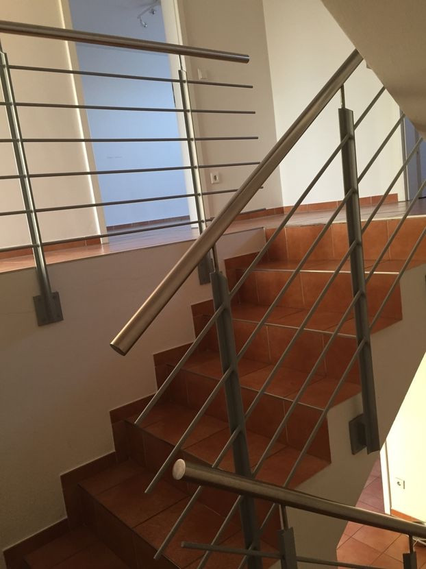 Betontreppe mit Empore und Teracotta Fliesen