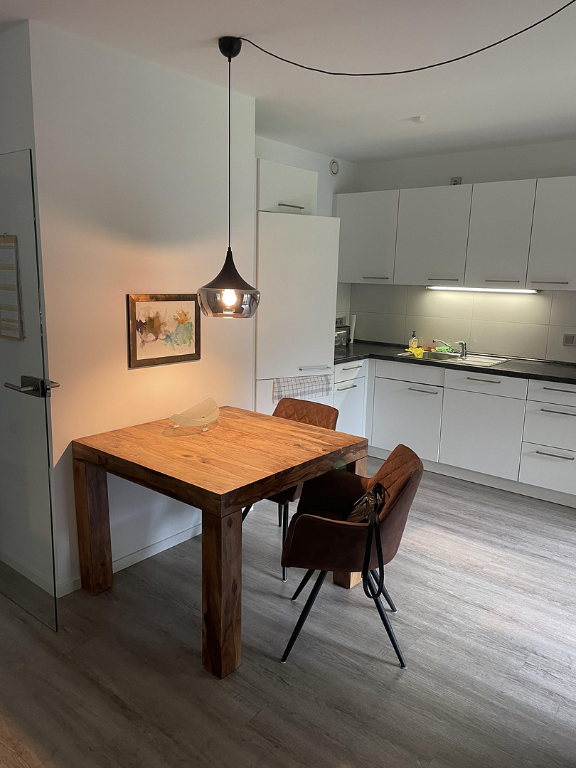 Nach Vereinbarung mit dem Vormieter könnten die auf den Bildern ersichtlichen geschmackvollen Möbel / Fensterdekorationen ganz oder teilweise entgeltlich übernommen werden. Daher ist die Wohnung auch geeignet als Zweitwohnsitz für Pendler*in oder Geschäftsführer*in.