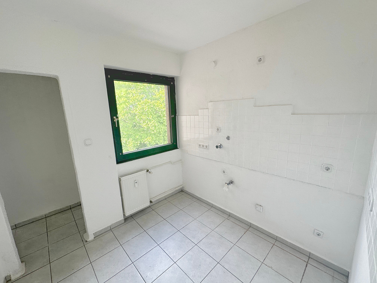 Die Wohnung befindet sich in einem renovierten Zustand. Alle Wände sind tapeziert und gestrichen. Die Böden sind mit hochwertigen Fliesen belegt.