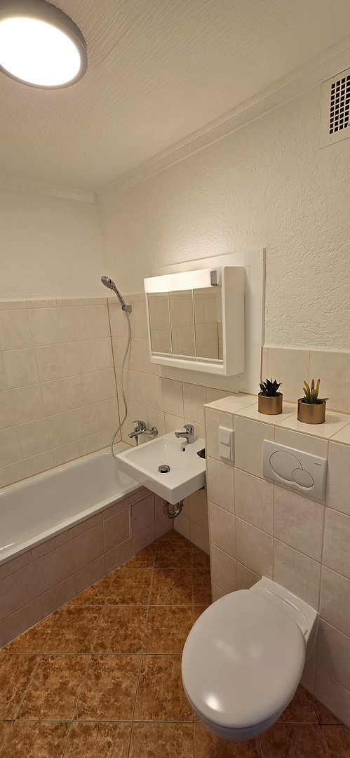 Der Badbodenbelag wurde erneuert, der Rest wurde vor ein paar Jahren saniert