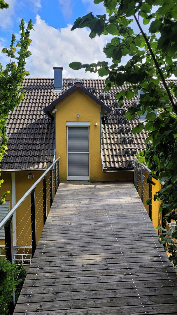 •Ein separates Gästehaus, das über eine Brücke vom Wohnhaus aus erreichbar ist