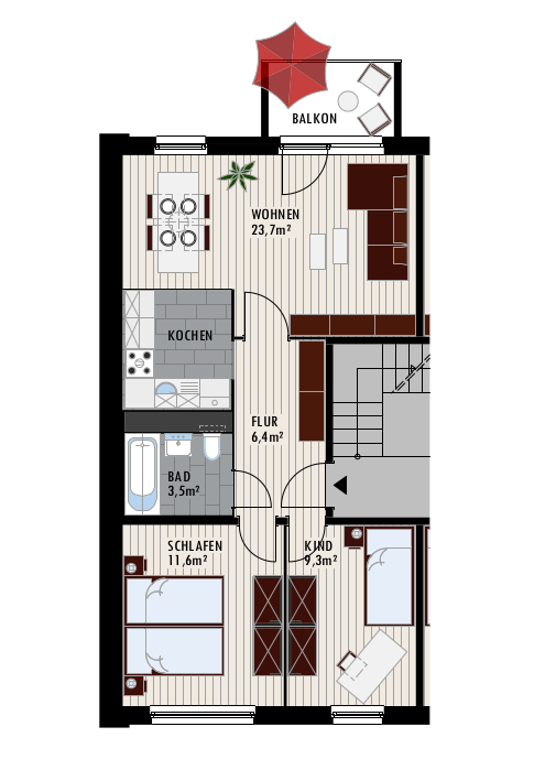 Für Familien und aktive Menschen haben wir im Erdgeschoss ausreichend Platz für Fahrräder und Kinderwagen eingerichtet. Ein Stellplatz für Ihr Fahrzeug steht ebenfalls zur Verfügung.