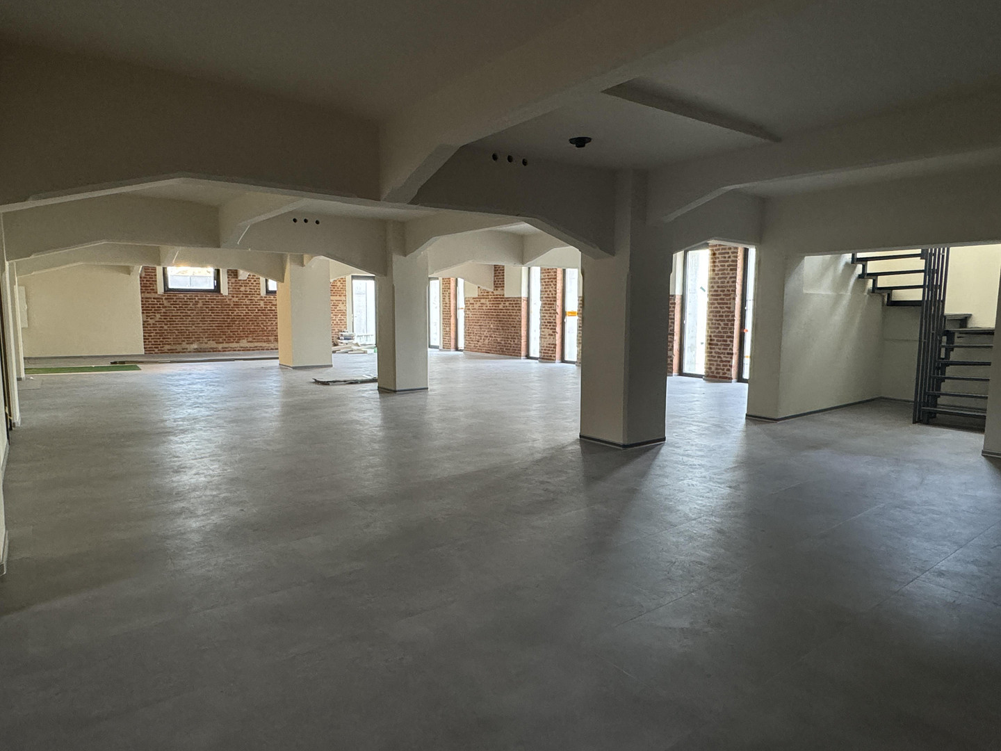 Im Objekt gibt es ein Kellergeschoss und 3 Etagen mit je ca. 250 bis 290 m². Kellergeschoss und Erdgeschoss haben jeweils einen Außenbereich, welcher mit angemietet wird. Aktuell ist nur noch das Obergeschoss anzumieten.