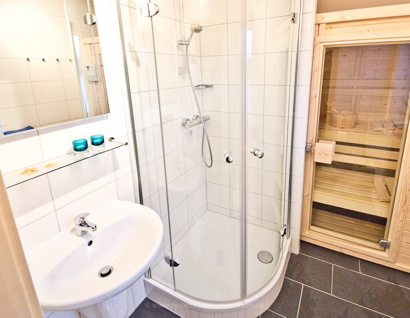 - 1 Vollbad mit Dusche, Wanne, WC, Doppelwaschbecken