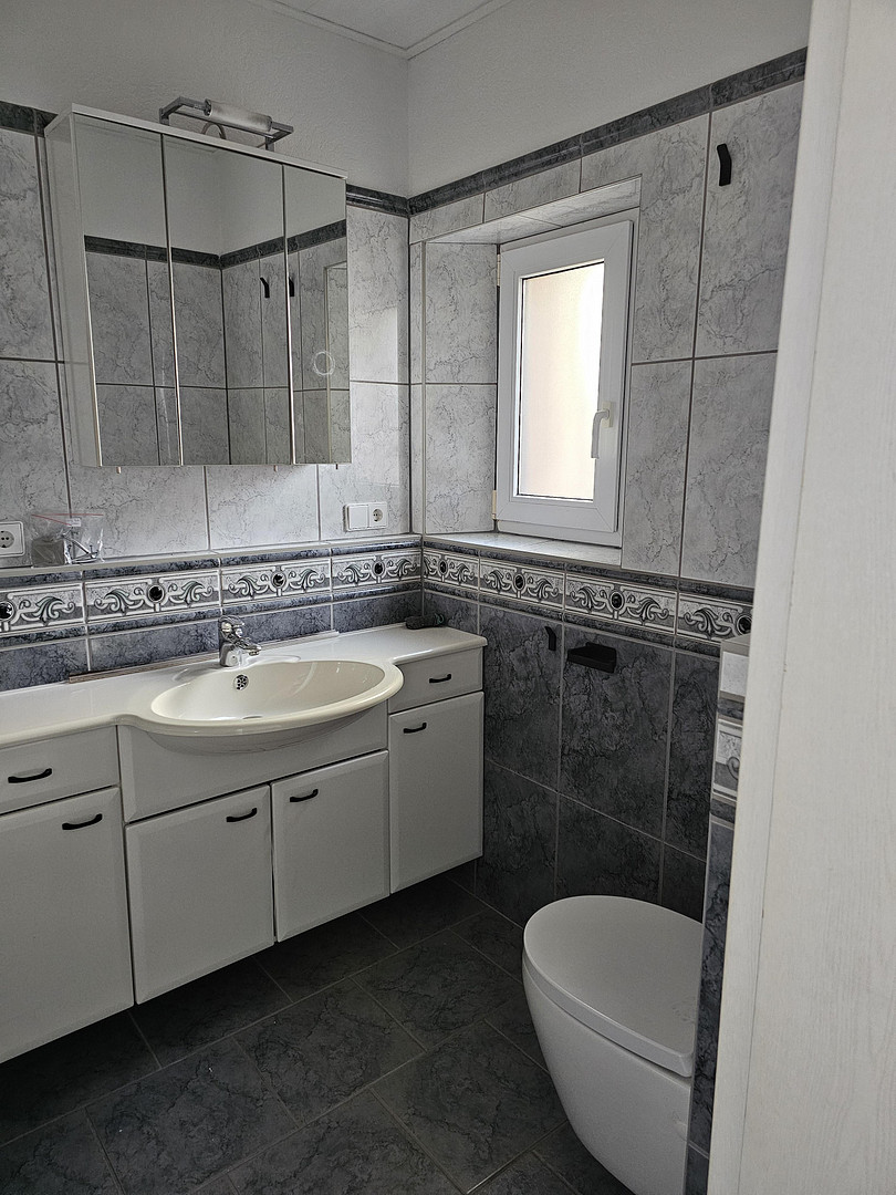 - Wände in hochwertigem Reibeputz in Wohnzimmer, Schlafzimmer und Flur