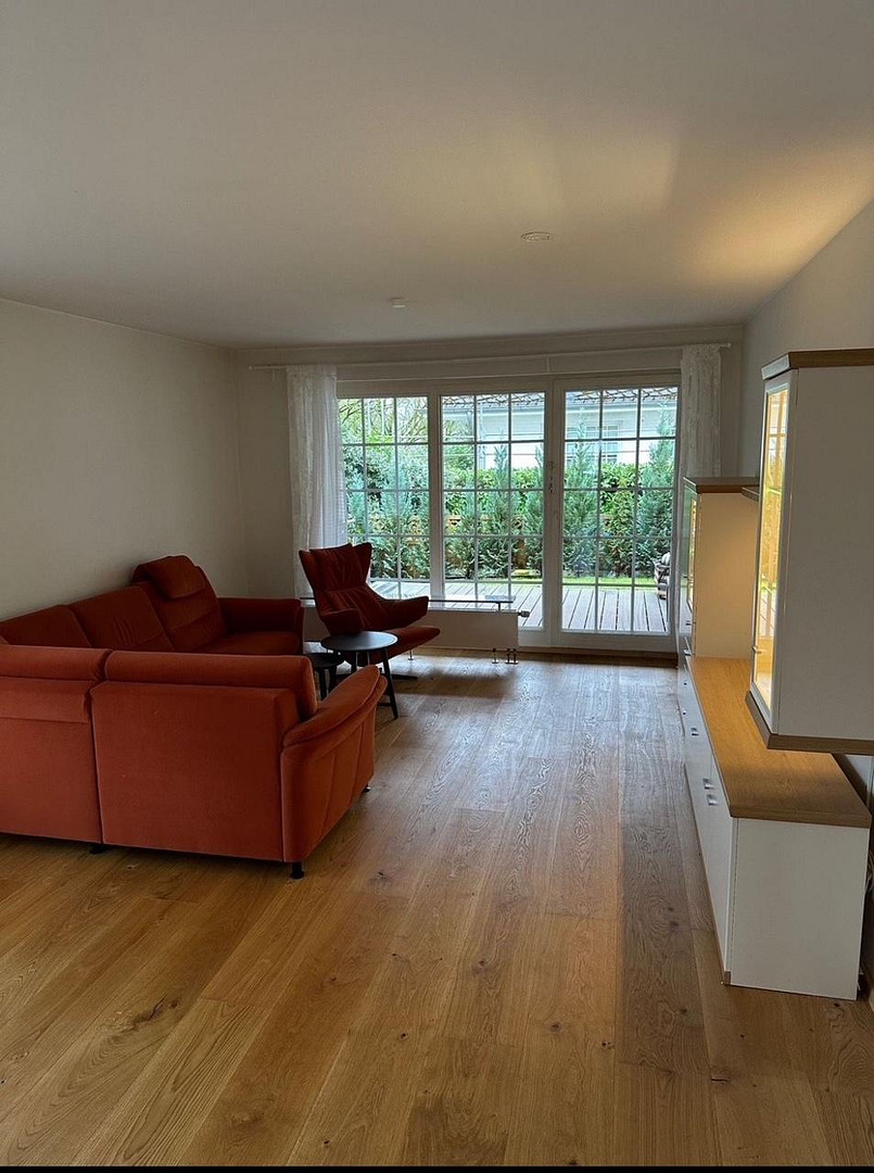 Edel renovierte Wohnung mit Echtholzparkett, neue Küche, neues Bad , Abstellraum, Kellerraum und Tiefgarage Stellplatz Terrasse und Garten mit Gartenhäuschen
