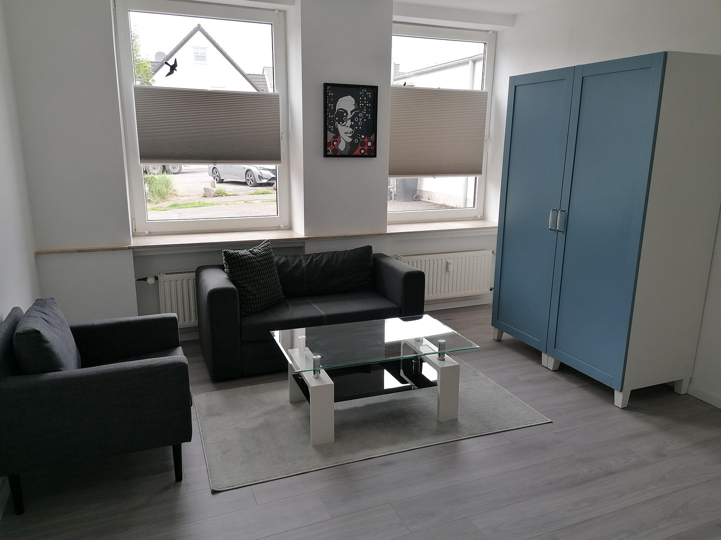 Schöffenweg 8, 51381 Leverkusen (Lützenkirchen) – Nordrhein-Westfalen1 helle WG Zimmer in großzügig geschnittener 149 qm Wohnung. Die Zimmer sind alle gleich mit Daybed 0,90 x 2,00 m, Kleiderschrank, Nachttisch, Nachttischlampe und Sessel sowie Rollos bzw.Vorhängen ausgestattet, haben jedoch unterschiedliche Größen und Mietpreise, das größte Zimmer ist zusätzlich mit einem kleinen Sofa und Wohnzimmer Tisch ausgestattet, die Einbauküche verfügt über 1 Spülmaschine, 2 Induktionskochfeldern, 2 Backöfen, 2 große Kühl-Gefrierschränke und Eßbereich. Die zwei neuen modernen Bäder sind mit großer Dusche und je einer Waschmaschine ausgestattet. Die Wohnung ist im Mai 2025 komplett neu saniert, renoviert und möbliert worden.