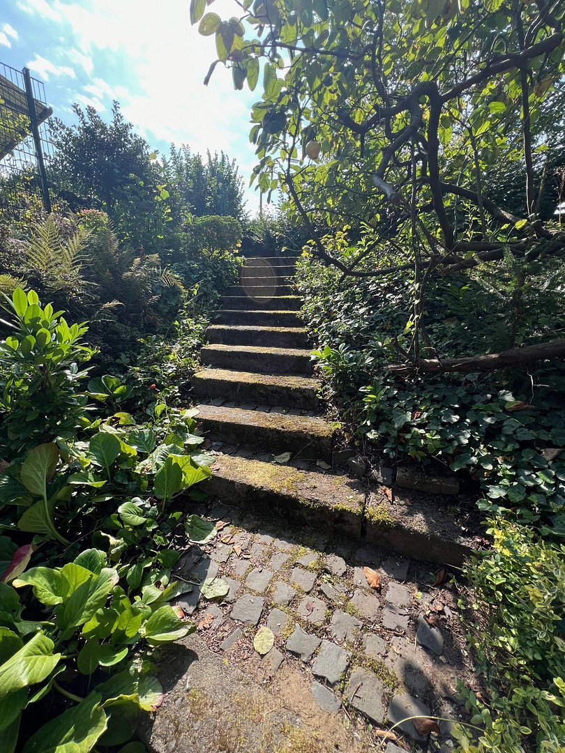 Der schön angelegte Garten verfügt über 3 Terrassen, welche aus Holz bzw. Altstadt - Kopfsteinpflaster angelegt wurden.