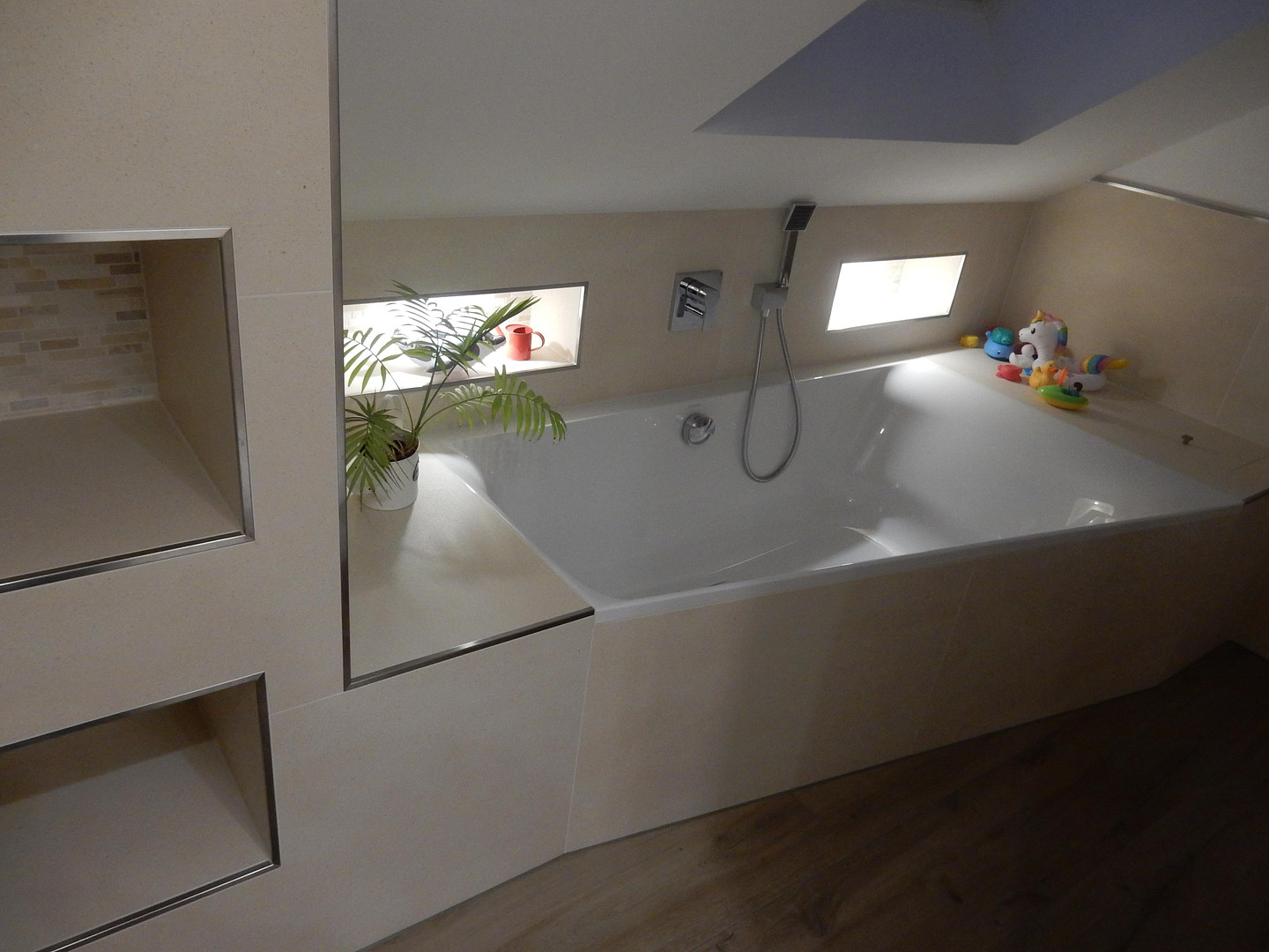 •Familienbad mit Dusche, Badewanne, Doppelwaschbecken und WC