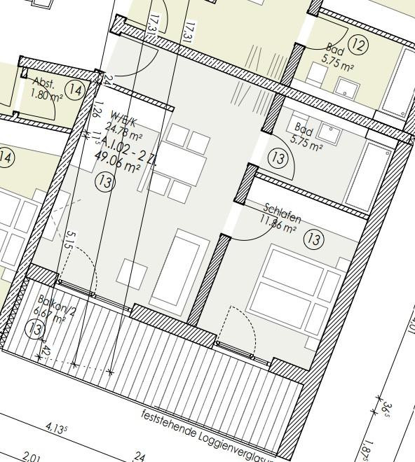 - 13,34 m² Balkon (6,67 m³)