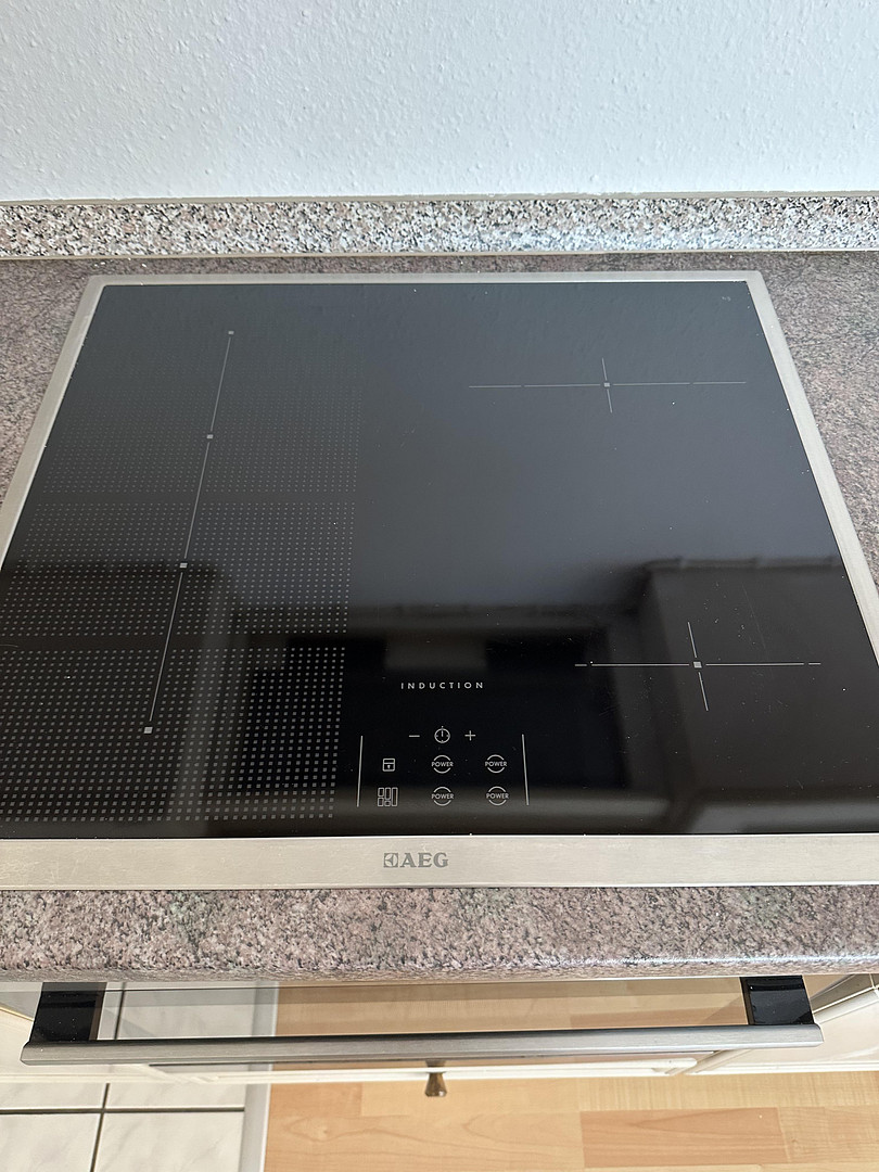 Die Einbauküche verfügt über moderne Geräte wie Ofen / Herd mit Induktionskochfeld von AEG, der Geschirrspüler ist von Siemens und lässt auch für passionierte Köche keine Wünsche offen.