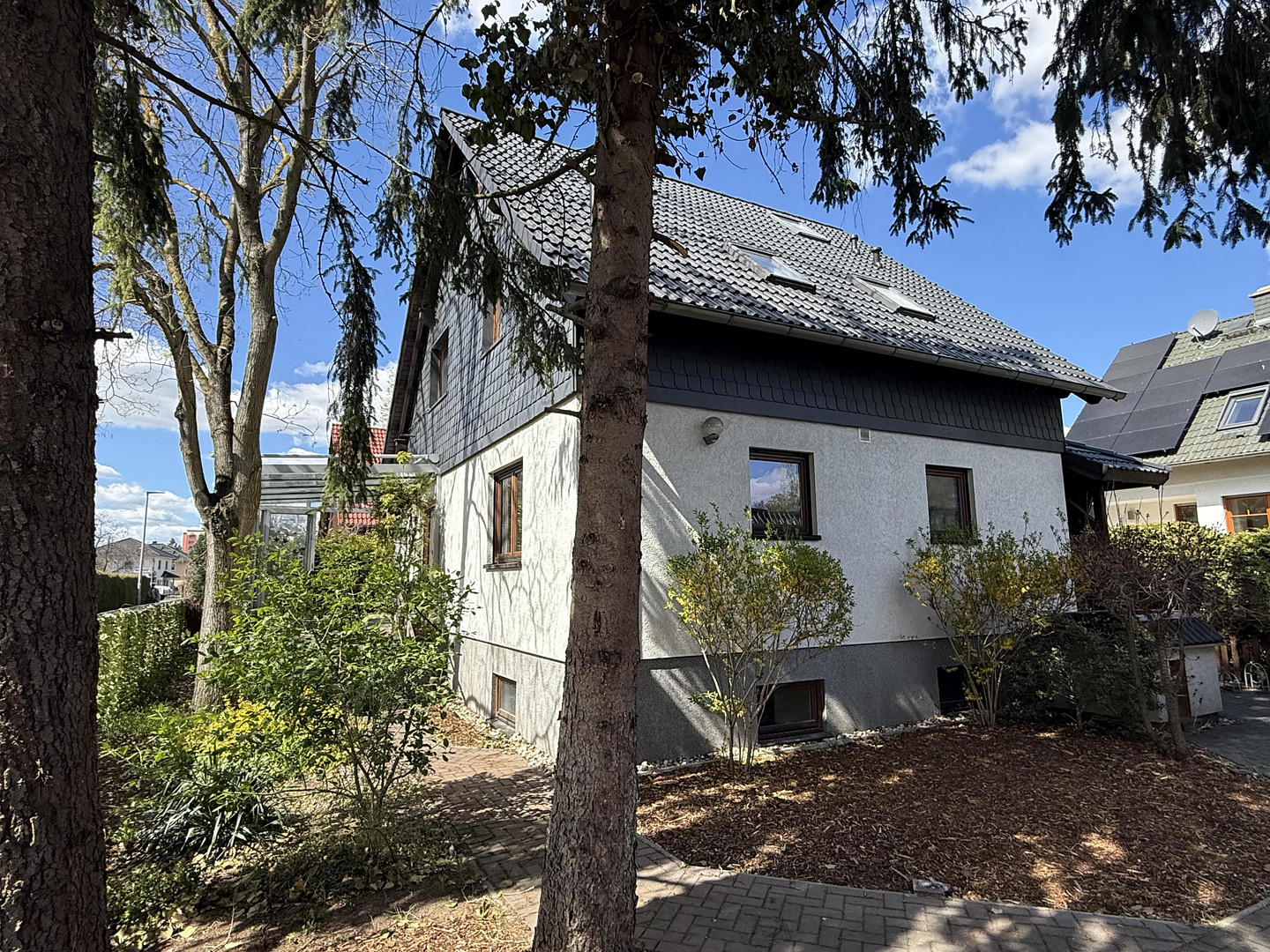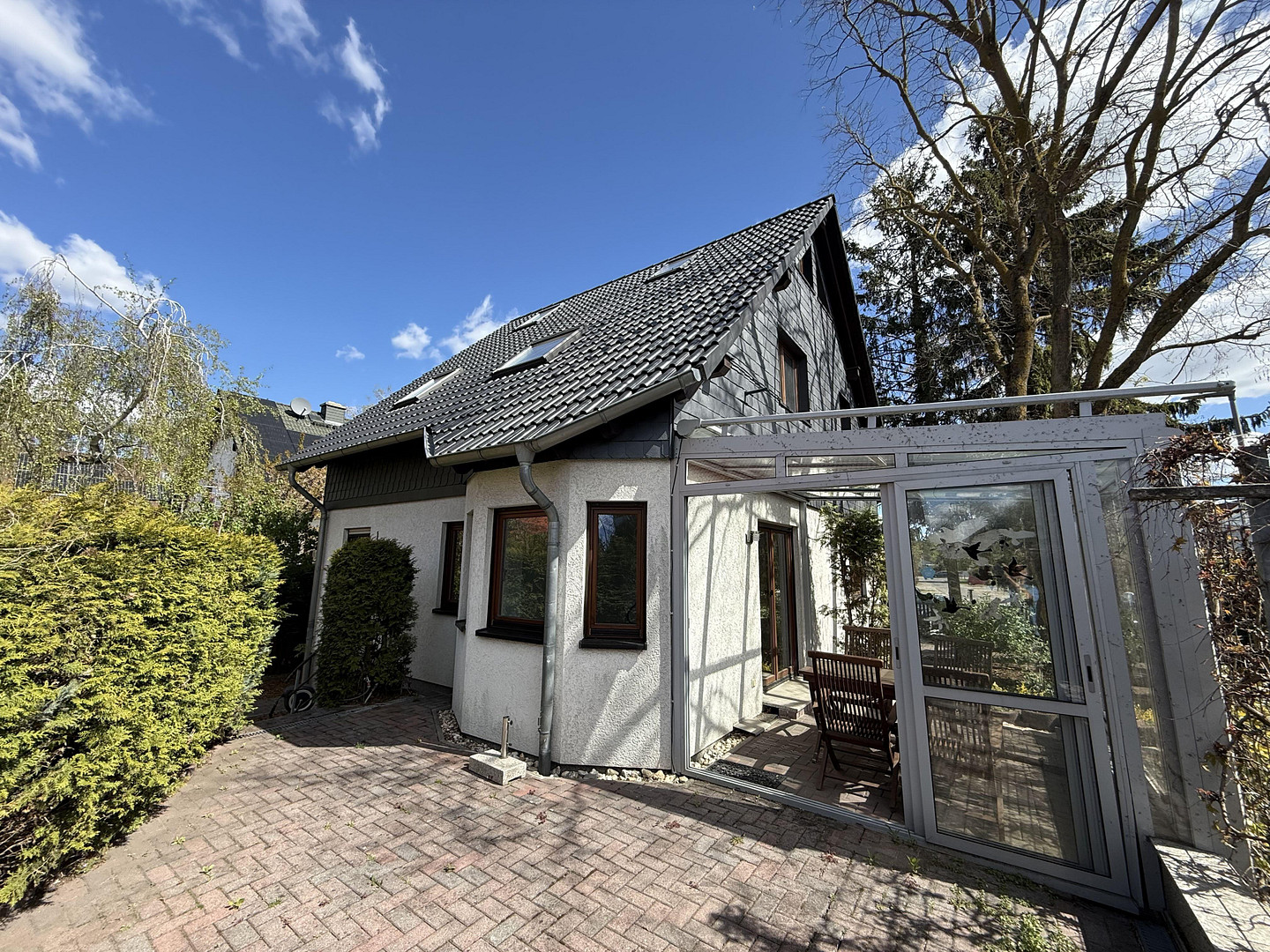 Gepflasterte Sonnenterrasse (Südausrichtung) mit Teil-Überdachung