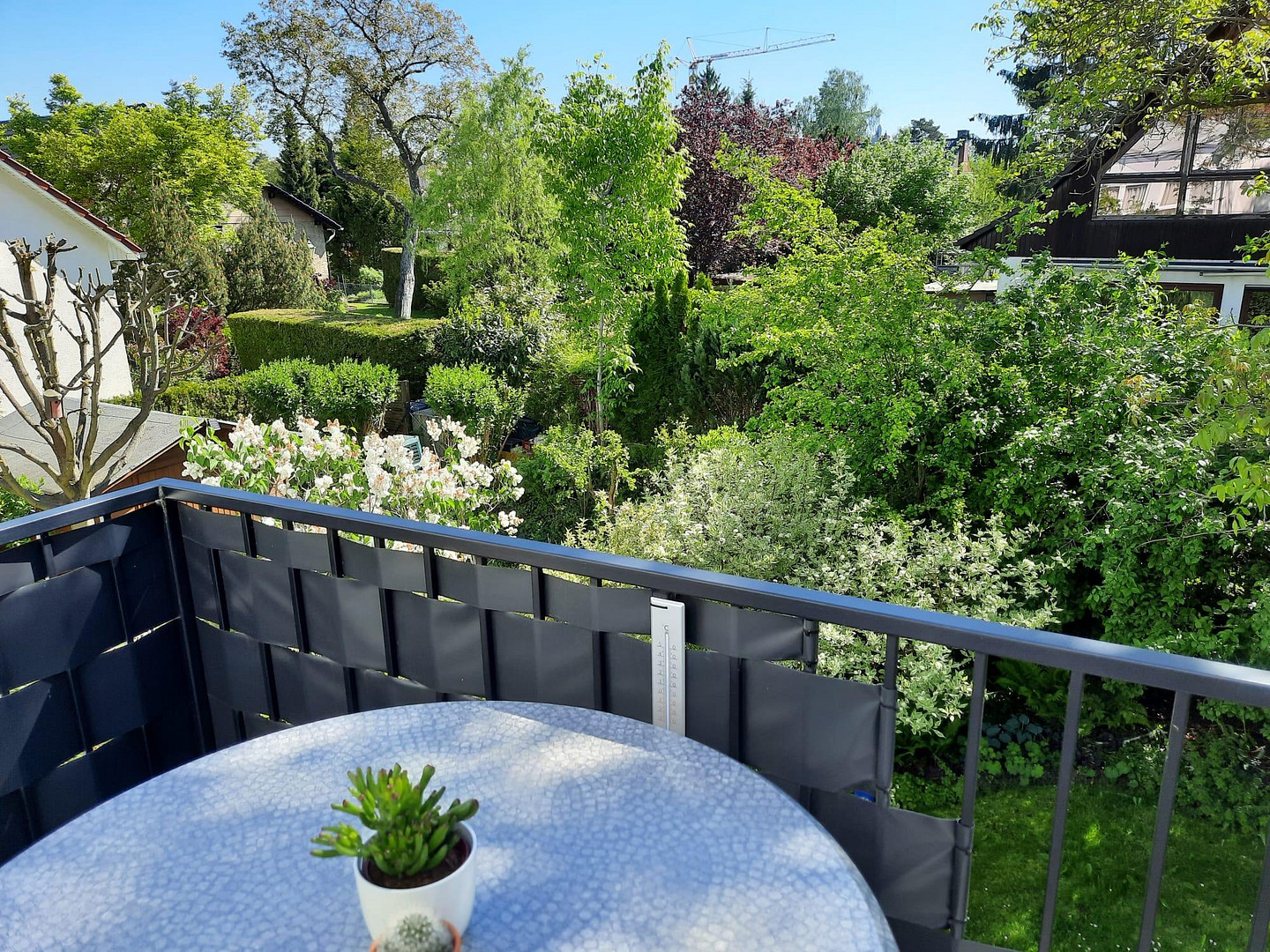 Die Wohnung liegt im 1. Obergeschoß zur Gartenseite. Man blickt aus allen drei